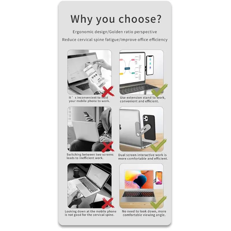 Описание:100% новый и высококачественныйОсобенность:Изготовлен из высококачественного алюминиевого сплава, прочный, прочный и стабильный в использовании.Автоматическое поглощение, может использоваться для подключения мобильных телефонов и ноутбуков.Гибкая регулировка под разными углами, вы можете отрегулировать удобный угол в соответствии с вашими потребностями.Складной удлинитель, маленький, легкий и удобный для переноски.Зарезервированный порт зарядки, он может поддерживать зарядку при одновременном использовании.Подключите ваш iPad или смартфон к ноутбуку, чтобы обеспечить многоэкранную вычислительную функцию, которая расширяет экран и помогает работать и учиться, а также приносит увлекательные игровые впечатления.При использовании экран телефона и компьютера плоские, нет необходимости смотреть вниз на экран телефона, чтобы просмотреть сообщение, повысить эффективность работы.Простота установки и использования, идеально подходит для домашнего офиса.Характеристики:Тип товара: Расширительная подставка мобильный телефонМатериал: алюминиевый сплавРазмер: 13x3x0,5 см/5,1x1,1x0,1 дюймаЦвет: серебристо-серыйКоличество: 1 шт.Примечание:Переход: 1 см = 10 мм = 0,39 дюймаДопускается погрешность в 0-1 см из-за ручного измерения. Пожалуйста, убедитесь, что вы не против, прежде чем сделать заказ.Из-за разницы между различными мониторами изображение может не отражать реальный цвет изделия. Спасибо!Посылка входит:1 x мобильный телефон Расширительная подставка2 х Магнитные прокладки
