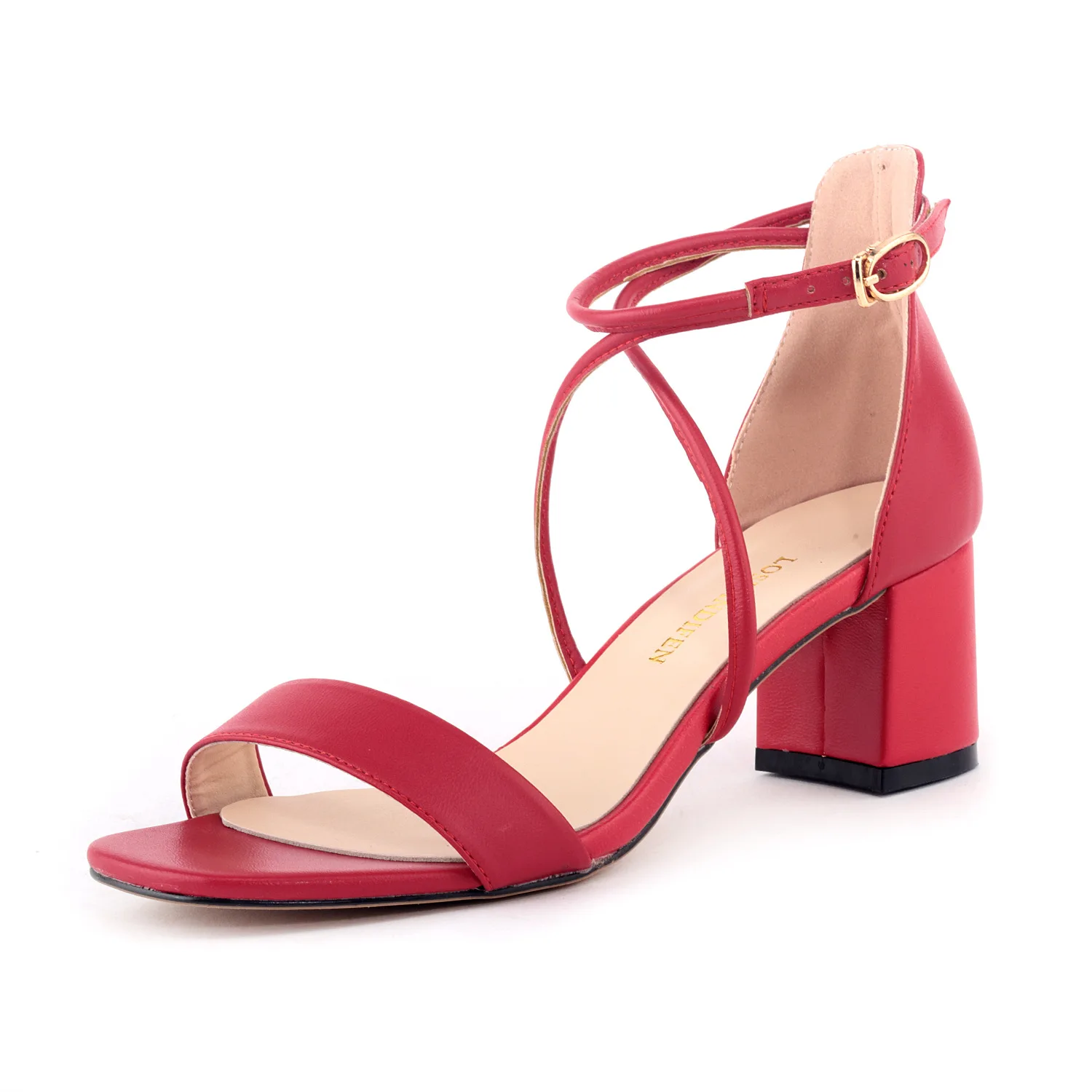 Босоножки женские с открытым носком, туфли-лодочки, ремешок с пряжкой, пикантные туфли для танцев на высоком каблуке, свадебная обувь вечерние цвет красный, NLK-C0178, лето