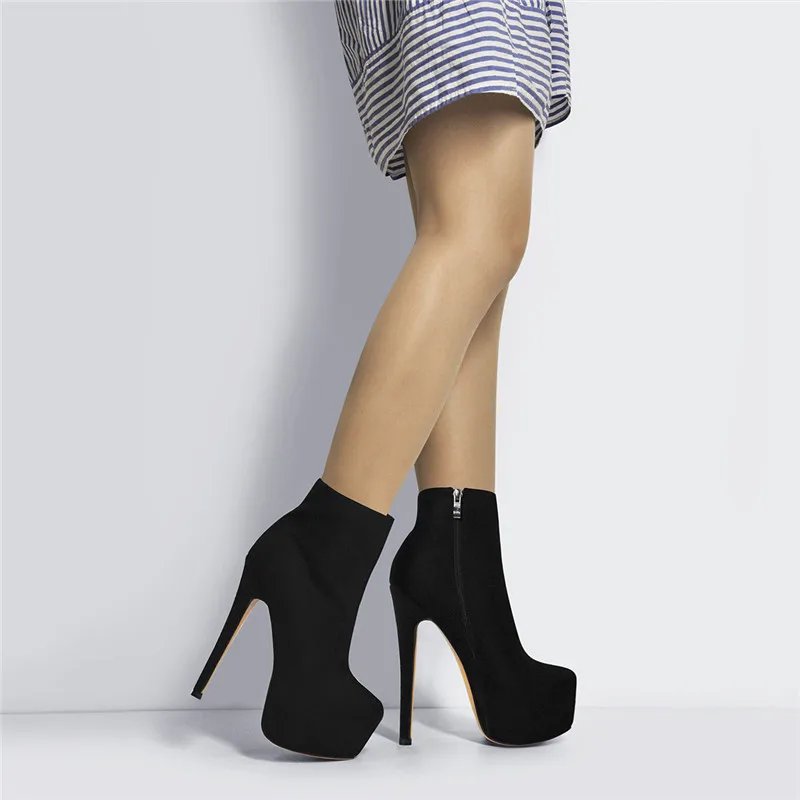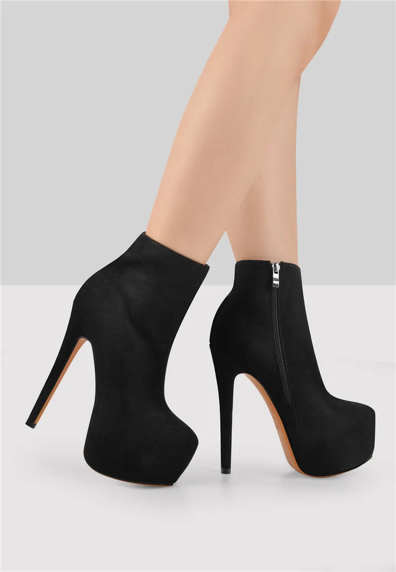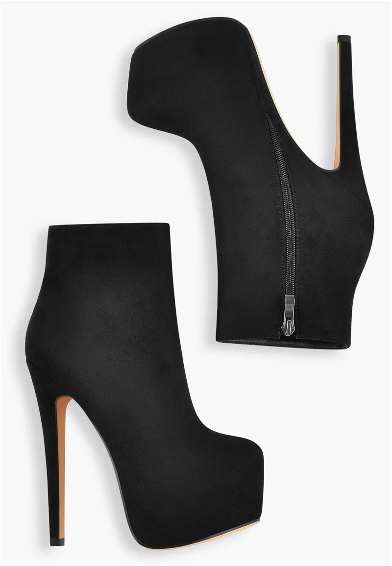 Onlymakerженские черные замшевые ботильоны на высоком каблуке и платформе с круглым носком; Классические ботильоны ручной работы на молнии; Большие размеры US5-US15