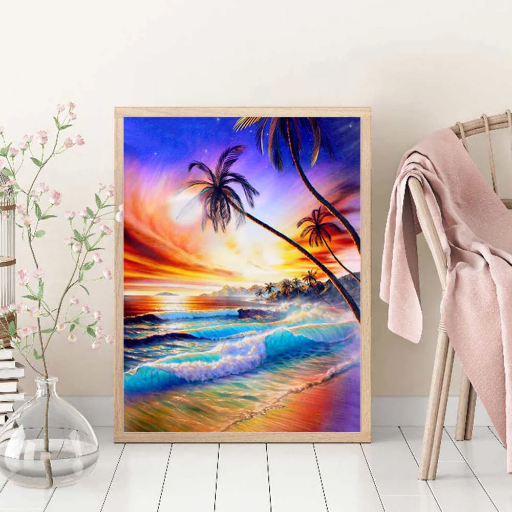 Huacan Алмазная вышивка пейзаж закат картины стразами полная выкладка алмазная мозаика по фото картины на стену