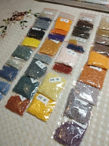 пришло вовремя.комплект полный. начили собирать, оказалось, что квадратные бусины собирать сложнее