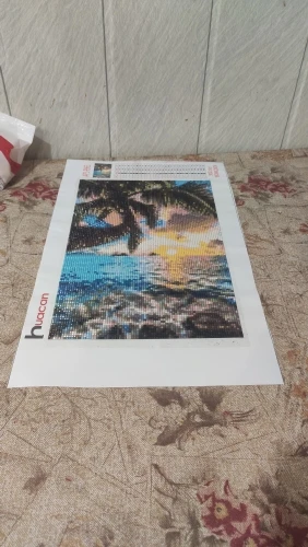 Как всегда у Huacan, качество на высоте. Отличные стразы красивых чистых цветов, хороший набор инструментов, полный комплект, прекрасная упаковка. Теперь Huacan не просто наматывает картинку на валик, но и запаивает в плёнку, поэтому мнутся только самые края, где нет рисунка. А это не важно. Причем у больших картинок то же самое, проверено. Качество печати не проверяла, не захотела распечатывать картинку, потому что покупала в подарок. Как всегда, покупкой у Huacan я очень довольна. Рекомендую!