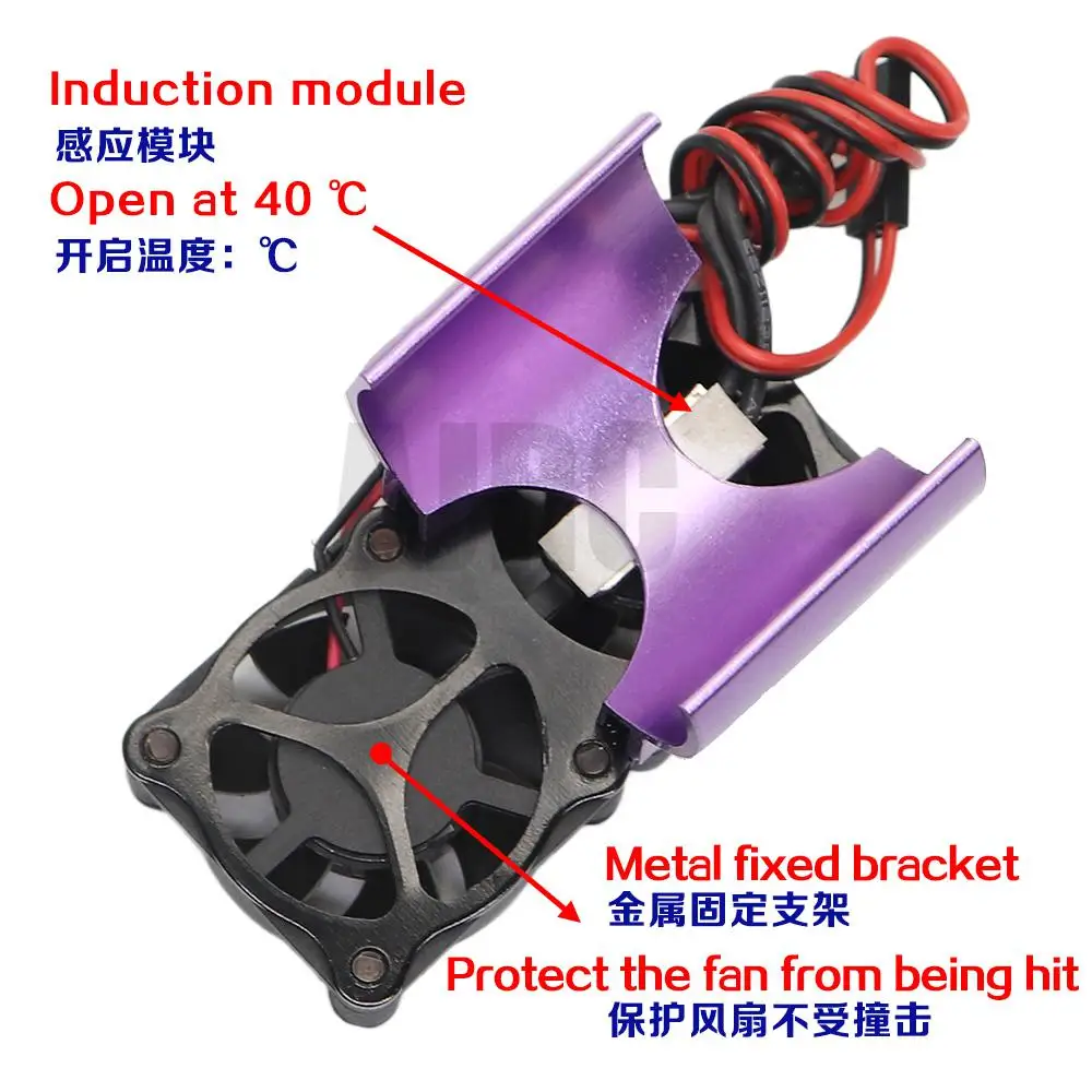 Детали для радиоуправляемых двигателей, радиатор + 1:10 HSP TRX-4 TRX-6 SCX10 RC 540 550 36 мм размер радиатора, термальная индукция, двойной вентилятор охлаждения