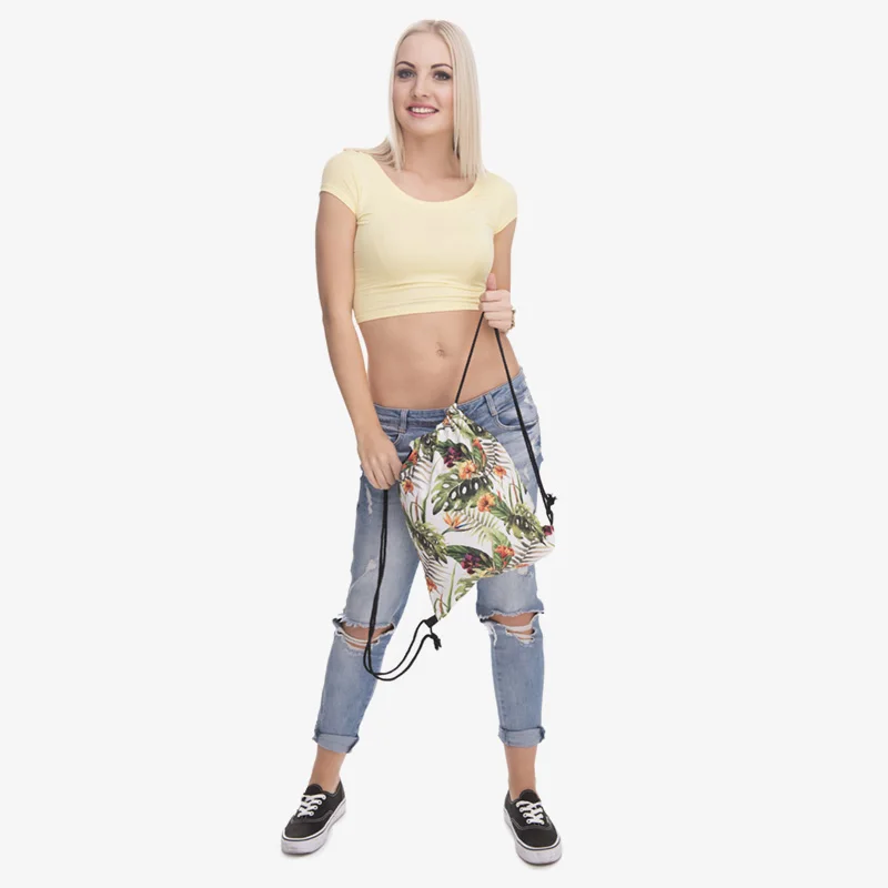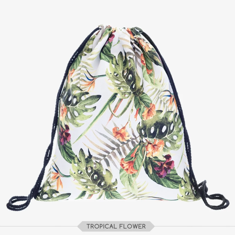3D мешок с кулиской с принтом тропических цветок Мода Mochila Cuerda дома и на открытом воздухе Рюкзак на шнурке для женщин мужчин Modis веревочной сумкой для девочек