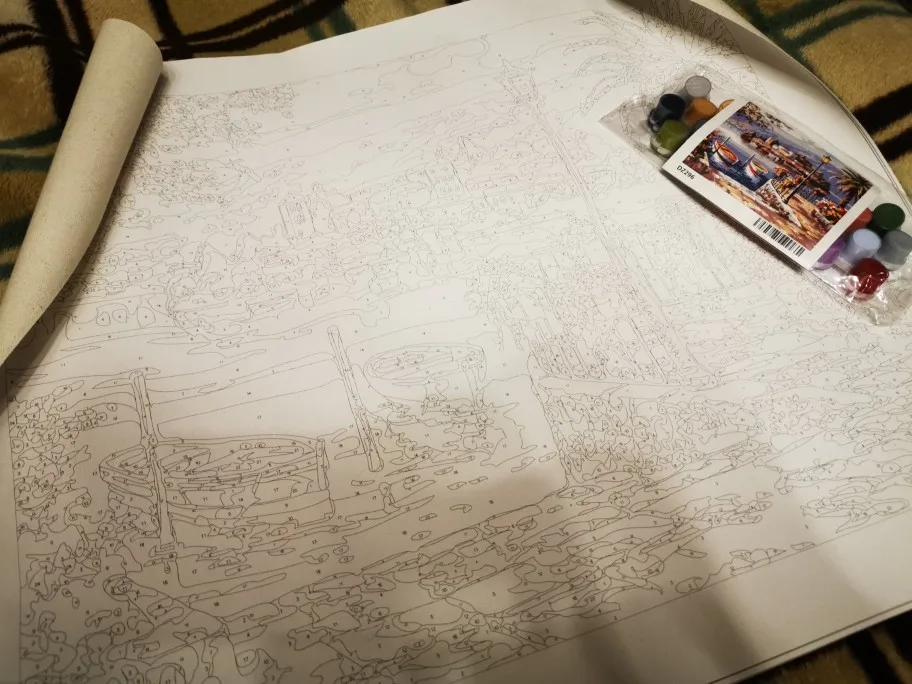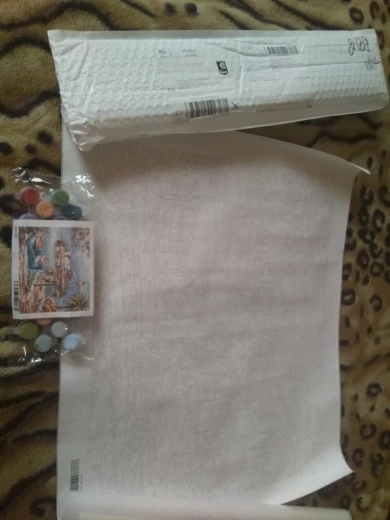 Товар пришел по истечении срока, к этому времени успела открыть спор. Продавец предоставил в вежливой форме аргументы . И оказался прав ведь посылка пришла и вина была на нашей территории. Набор хороший и состоит из : трёх кисточек, необходимого количества красок, крепления для будущей картины, самого холста.
