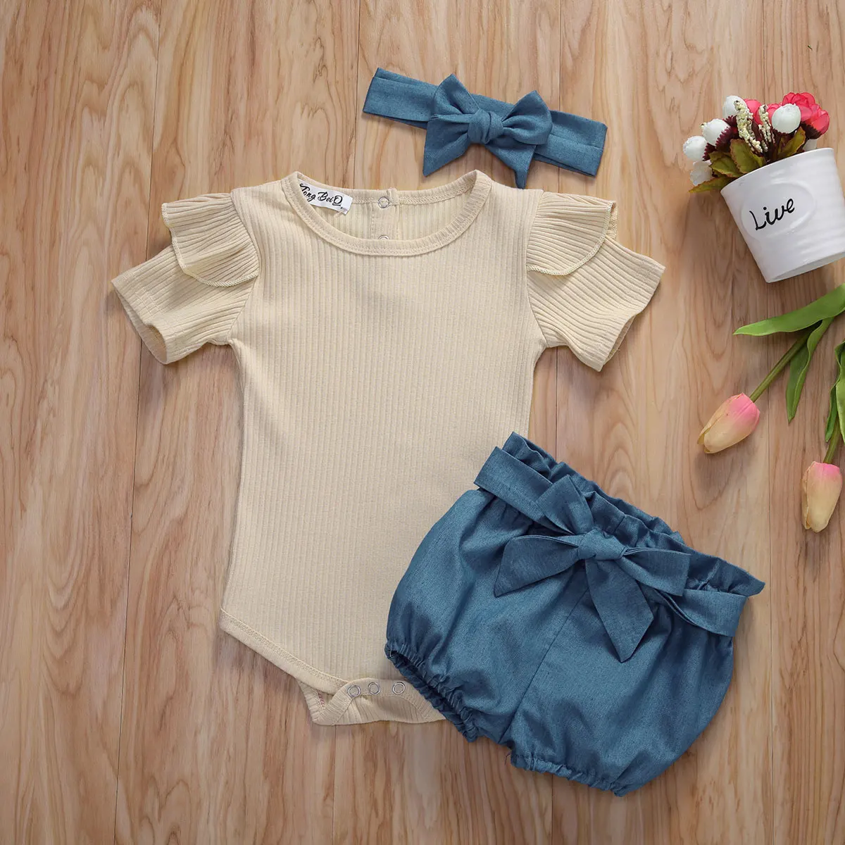 Комбинезон для новорожденных, с коротким рукавом и шортами