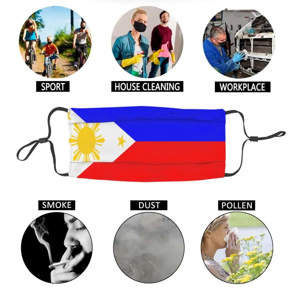 Многоразовая маска для лица с флагом Филиппин, противодымчатая Пылезащитная маска, респиратор для рта