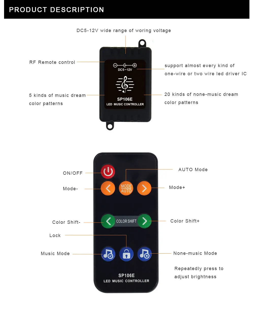 Светодиодная RGB лента DC5-12V SP106E, музыкальный контроллер с 9 клавишами, WS2811 WS2812B SK6812, волшебная Светодиодная лента, цифровой цветной музыкальный контроллер