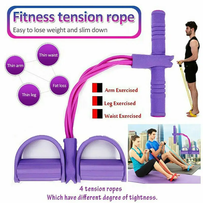 Ножная педаль Тяговая веревка сопротивление 4-трубный Педальный Тренажер домашний фитнес Йога тренажерный зал рука сила фитнес-оборудование сидение