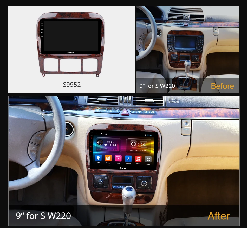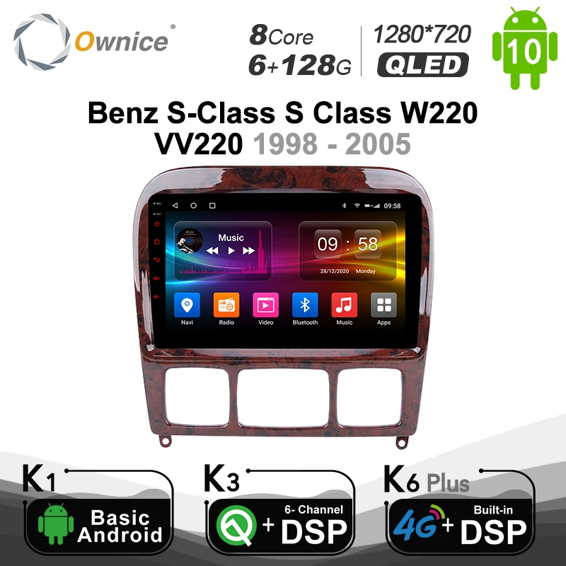 6G + 128G Ownice Android10.0 для Mercedes Benz S-Class S Class W220 VV220 1998 - 2005 2din автомобильный DVD-плеер радио SPDIF 1280*720 Подходит для Для Mercedes Benz S-Class S Class W220 VV220 1998 - 2005 Если оригинальная Автомагнитола имеет функцию ниже, будет ли головное устройство Ownice Совместимо с? * Управление рулевым колесом --- да* Состояние хоста --- да* Поддержка оригинального автомобильного усилителя, но необходимо доплатить за покупку оптического декодирования Canbus MOST25-02 ниже Внимание: Вышеуказанная информация предназначена только для справки, иногда она может быть несовместима с некоторыми автомобилями из-за того, что автомобили производятся в разных странах в разных годовых версиях, спасибо за понимание. K6 Plus 128G ---UIS7862| Android 10,0 |8 ядер (A75 * 2 + A55 * 6) | 6G + 128G | 2.5D + IPSQLED 1280*720 | Радио 7708 | Усилитель 7851L K6 Plus 64G ---UIS7862| Android 10,0 | 8 ядер (A75 * 2 + A55 * 6) | 4G + 64G | 2.5D + IPSQLED 1280*720 | Радио 7708 | Усилитель 7851L K6 Plus 32G ----UIS7862| Android 10,0 | 8 ядер (A75 * 2 + A55 * 6) | 3G + 32G | 2.5D +IPS QLED 1280*720 | Радио 7708 | Усилитель 7388 K3-PX5 ------- PX5 | Android 10,0|8 ядер | 2G + 32G | 2.5D + TN1024*600 | Радио 7708 | Усилитель7851L K3-PX6 ------- PX6 | Android 10,0 | 6 ядер (A75 * 2 + A53 * 4)| 4G + 64G | 2.5D +IPS 1280*720 | Радио 7708 | Усилитель 7851LK1-Low ------- AC8227L | Android 6,0 | 4 ядра| 1G + 16G | 2.5D + TN 1024*600 | Радио 7786 | Усилитель 7388K1-High ------- AC8227L | Android 8,1 |4 ядра | 2G + 16G | 2.5D + TN 1024*600 | Радио 7786 | Усилитель 7388