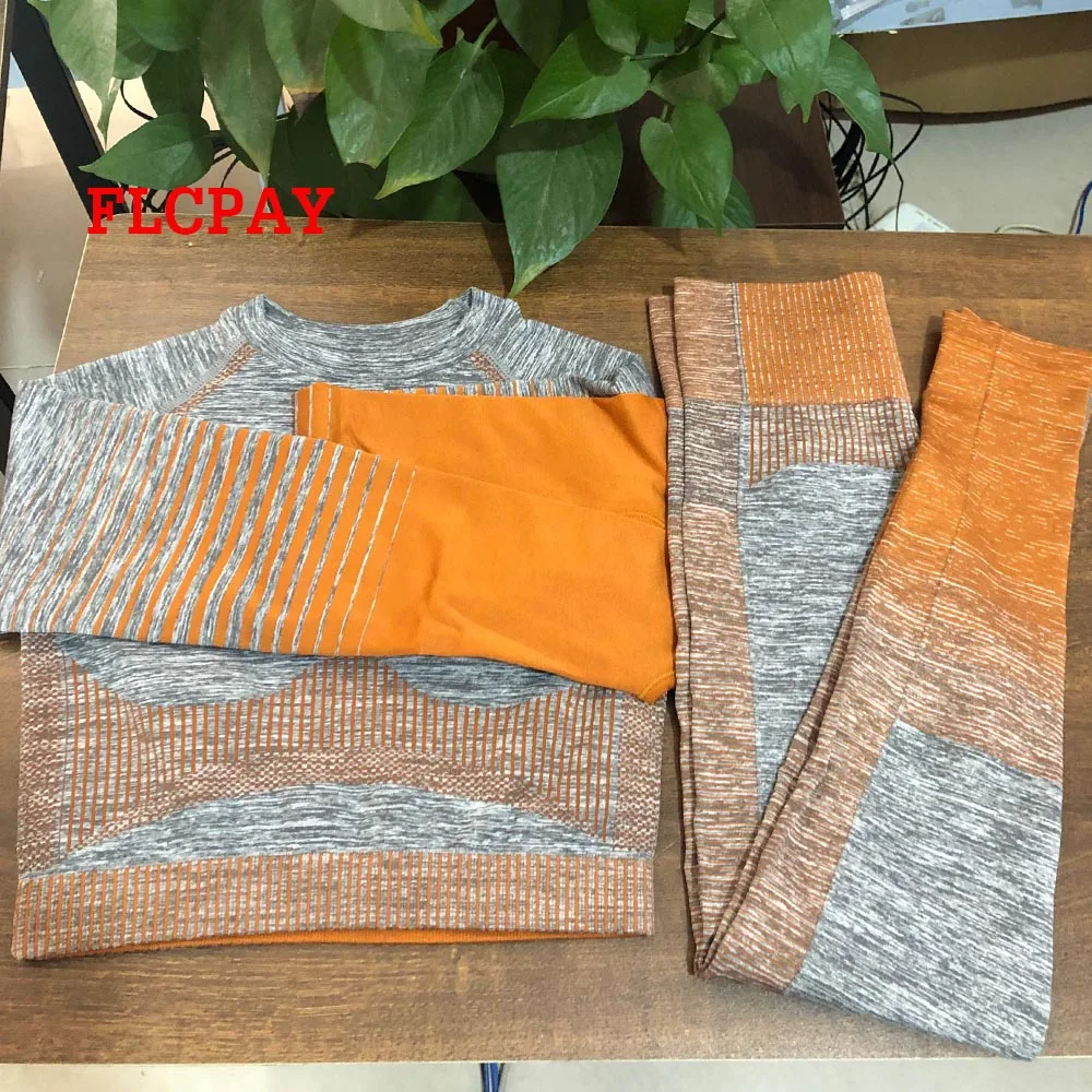 Женские Бесшовные Спортивные Леггинсы с высокой талией, комплект для йоги, женский спортивный одежда спортивные костюмы, комплект для занятий йогой, Топ с длинным рукавом