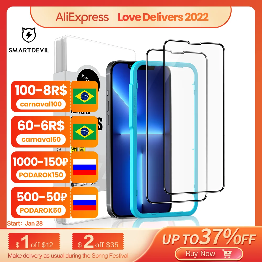 Закаленное стекло SmartDevil для iPhone 11, защита экрана с полным покрытием для iPhone 13 Pro Max 12 Pro Max mini 7 8 X XS XR, 2 шт.