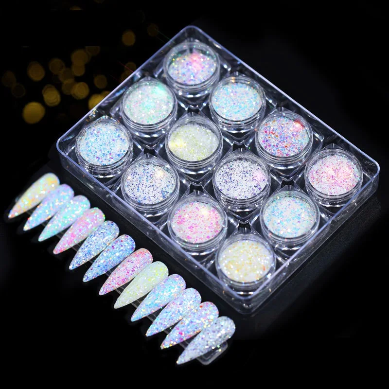 12 цветов голографические блёстки для ногтей блестки лазерные блестящие хлопья порошок дизайн ногтей хромированный пигмент пыль блестки Маникюр DIY украшения