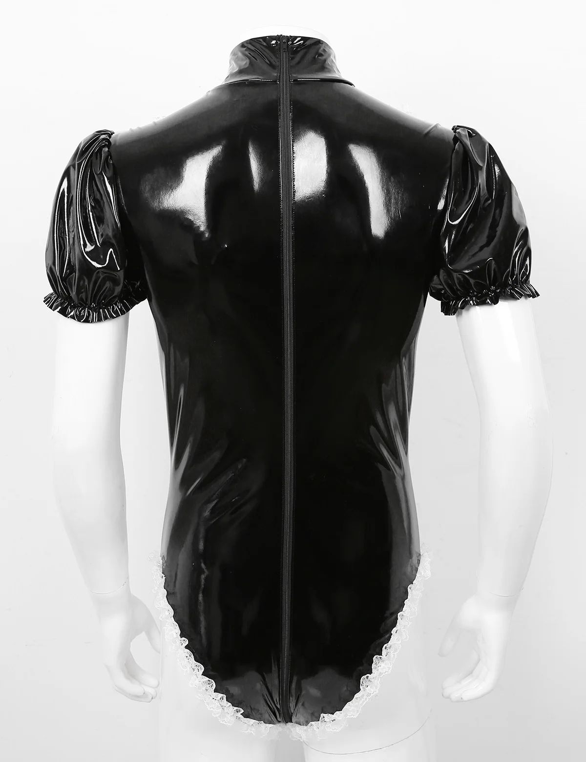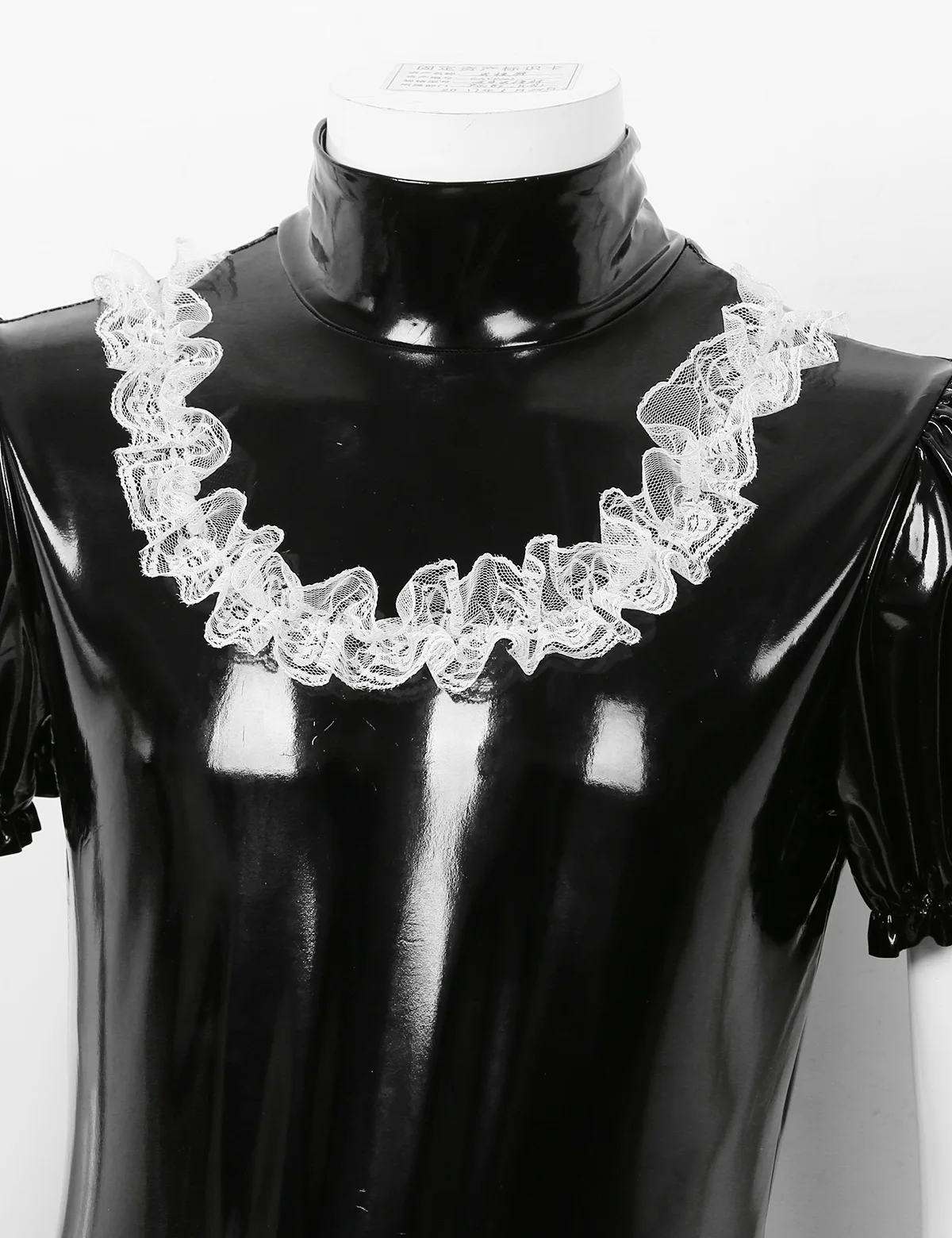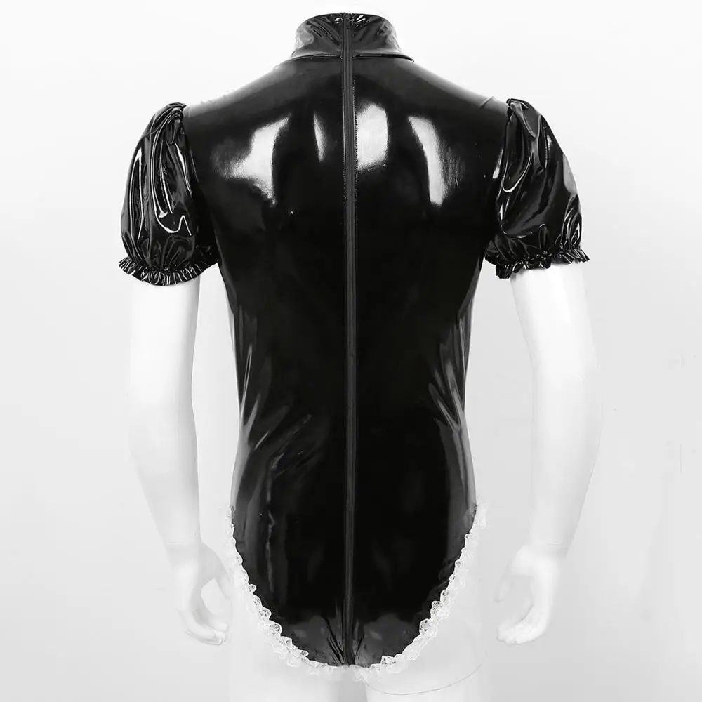 Особенности: Мужчины взрослые wet look горничная Сисси Косплей Костюм Хэллоуин ролевой набор, сделает вас манящей и соблазнительной. Высокий вырез горловины и короткие пышные рукава. На горловине и проймах штанин кружево с рюшами. Двусторонняя молния проходит от горловины сзади до ластовицы спереди для удобства одевания. В паре с эластичной кружевной повязкой на голову. Изготовлен из высококачественной лакированной кожи, очень мягкий и удобный в носке, приятный на ощупь. Идеально подходит для клубной одежды, ролевых игр, маскарадной вечеринки, карнавала, тематических вечеринок и Хэллоуина. Перед покупкой внимательно ознакомьтесь с таблицей размеров, рекомендуется ручная стирка.