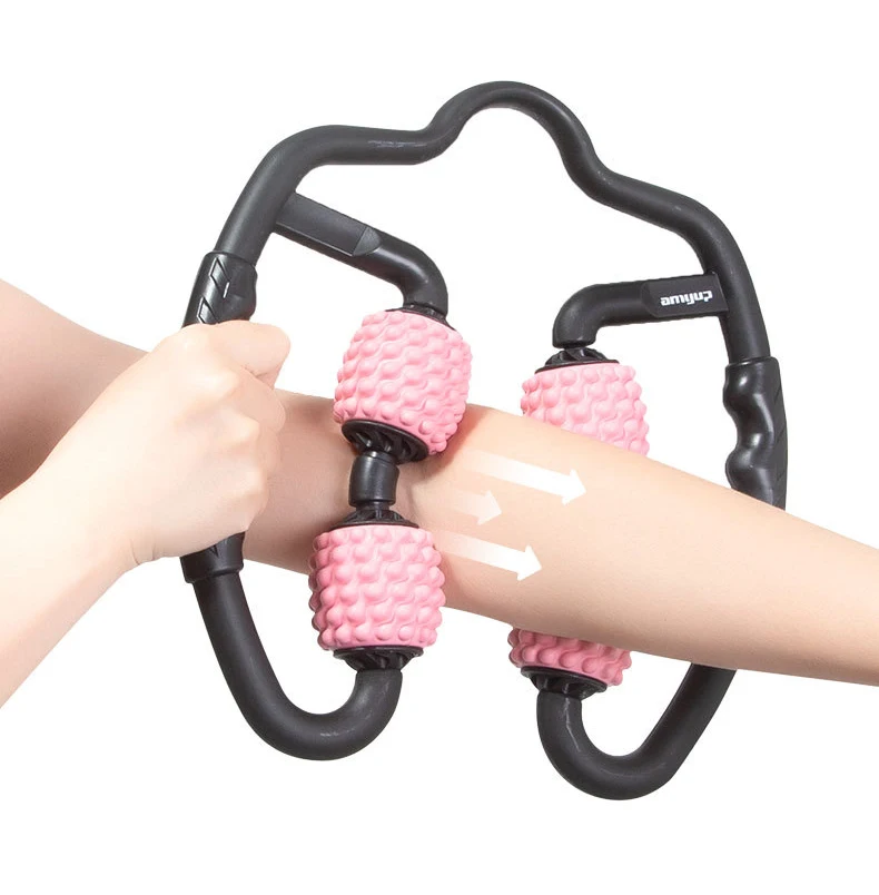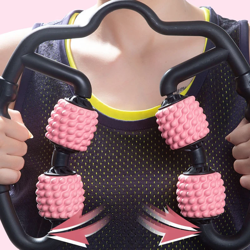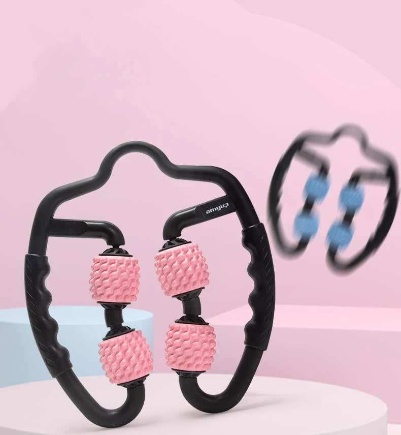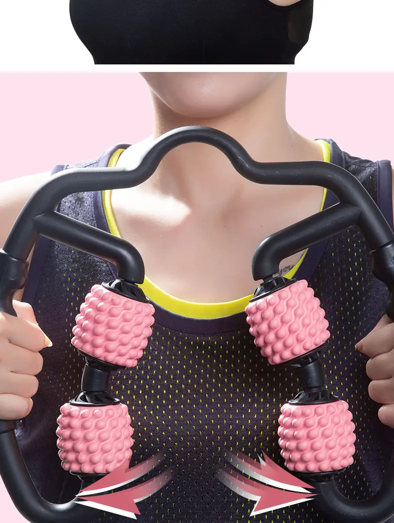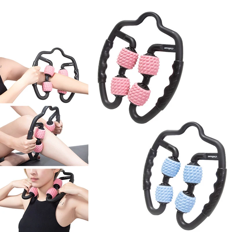 U-образный массажный ролик с триггерными точками для рук, ног, шеи, мышечной ткани для фитнеса, тренажерного зала, йоги, пилатеса, спортивный 4-колесный роликовый массажер