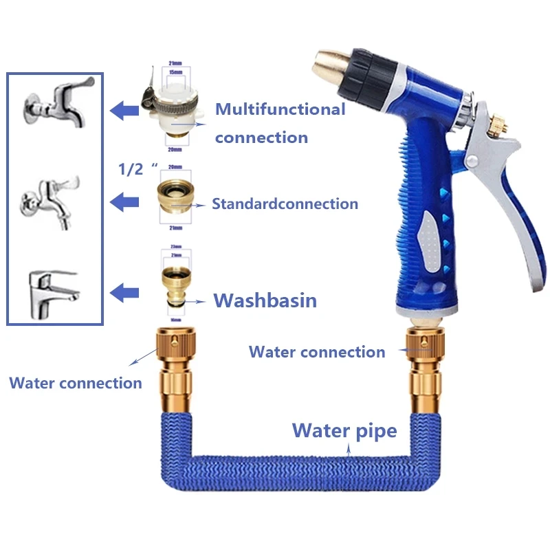 Выдвижной садовый шланг для мойки высокого давления, водяной пистолет, бытовой соединитель для крана, подходит для полива
