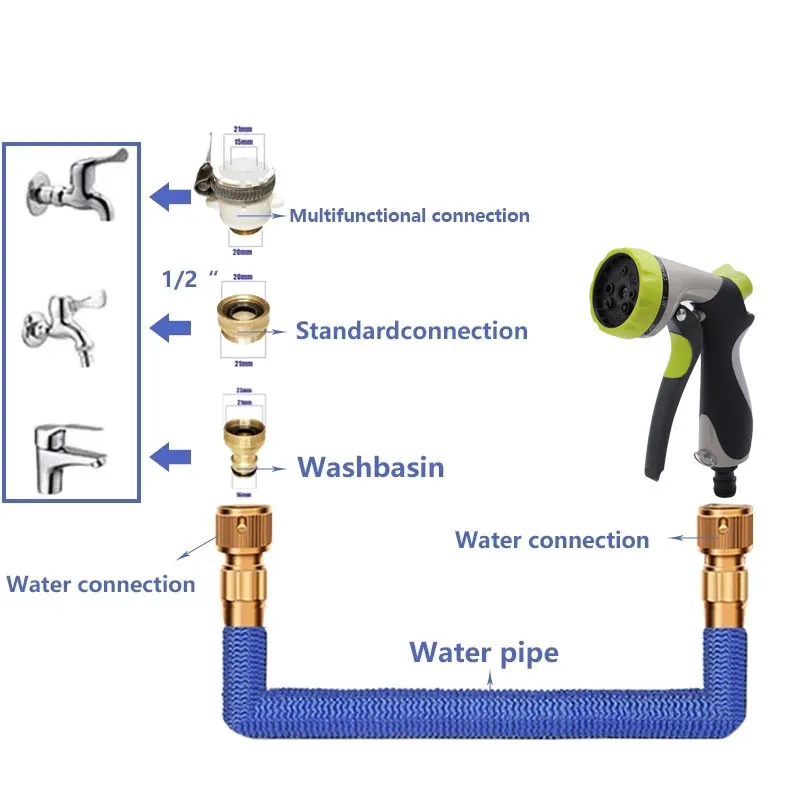 Расширяемый садовый шланг, гибкая резиновая насадка для мойки высокого давления, шланг для мойки автомобилей и овощей