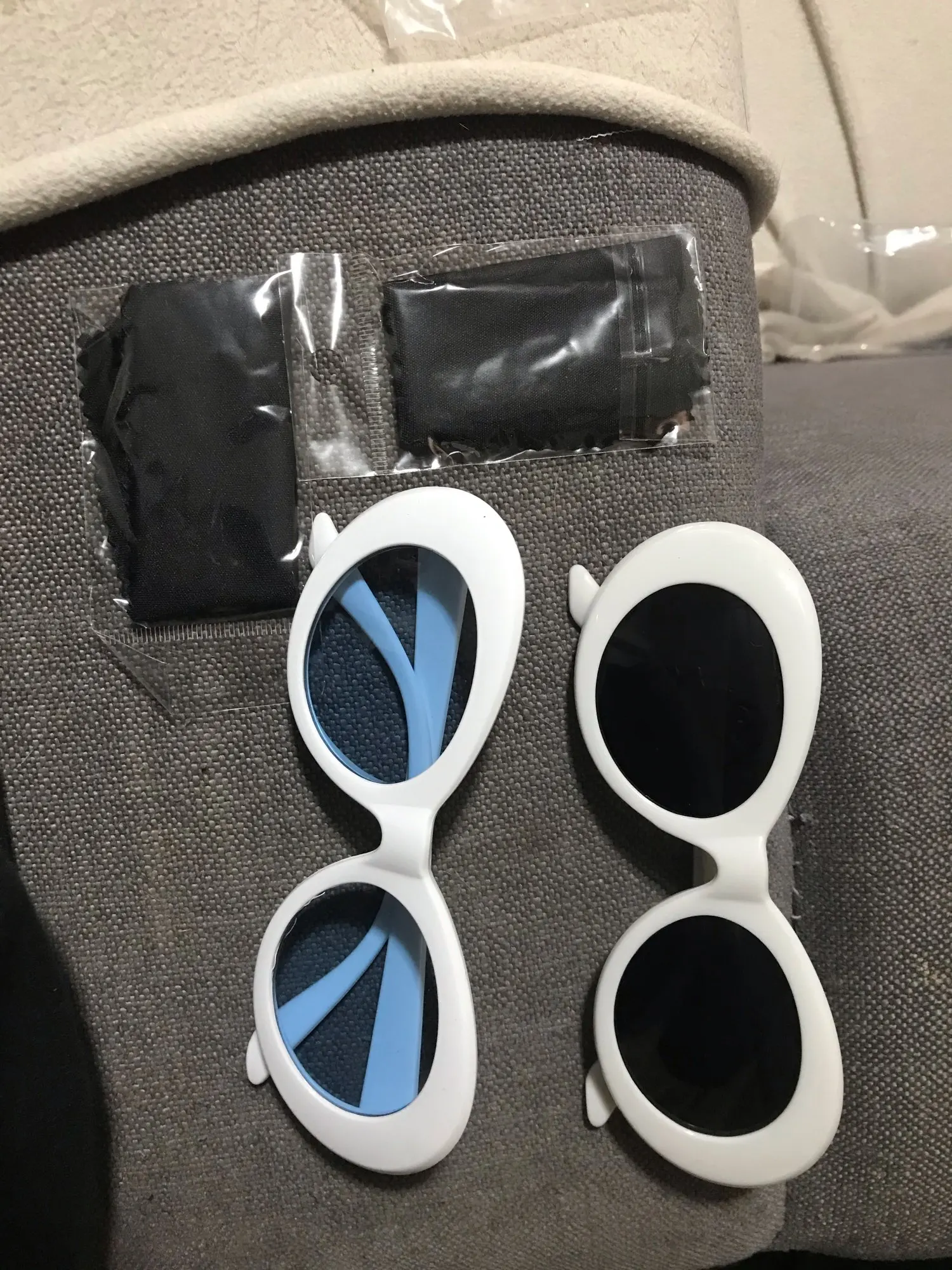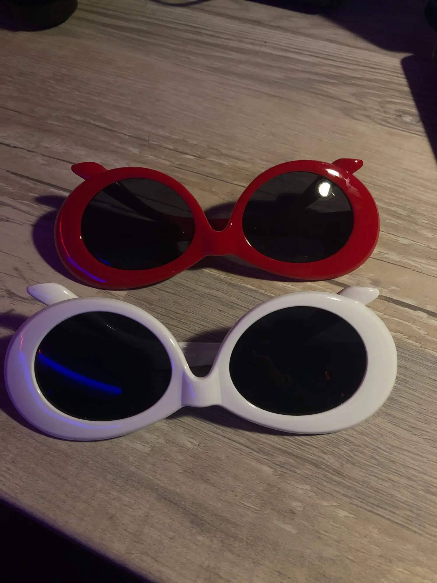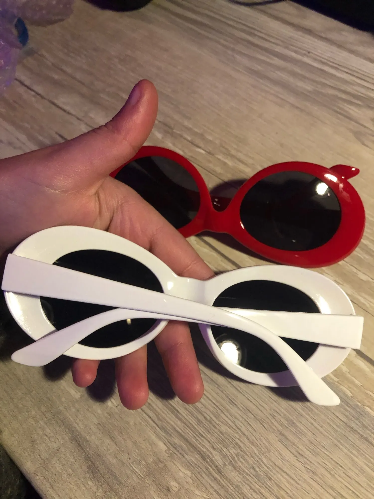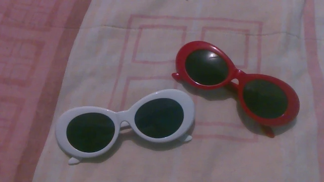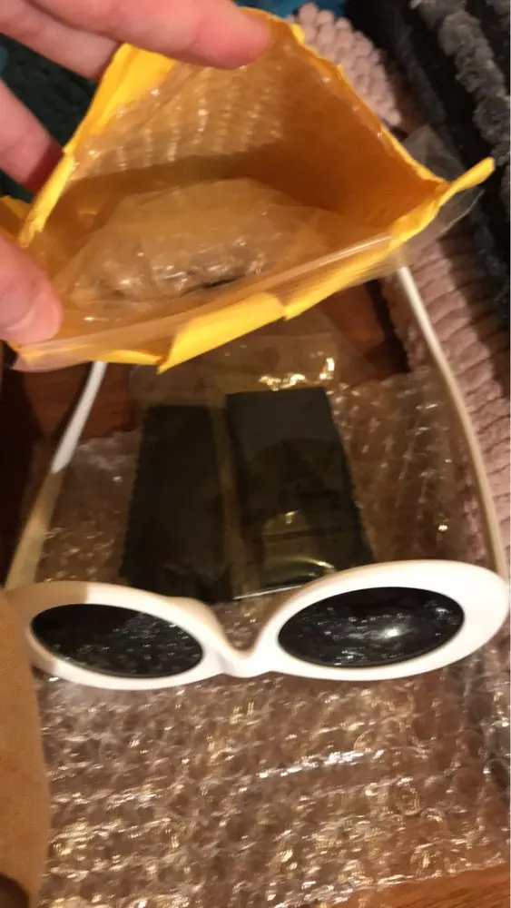1.Доставка Обещали через месяц, пришли через 2 месяца (оплачено, чтобы побыстрее), пришли вообще будто я дополнительную сумму для доставки быстрой и не платила. Продавец не отвечал. Очки, якобы, прибыли 2 раза (лол) в страну. Будто потеряли их и отослали новые. 2. Товар. Как на фото. Всё круто. Я заказала 2 шт (белый и чёрный).царапин - нет, стиль Курта - есть :)