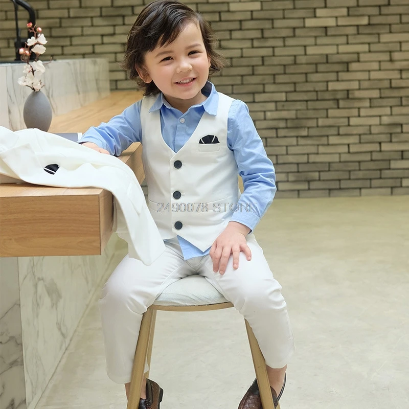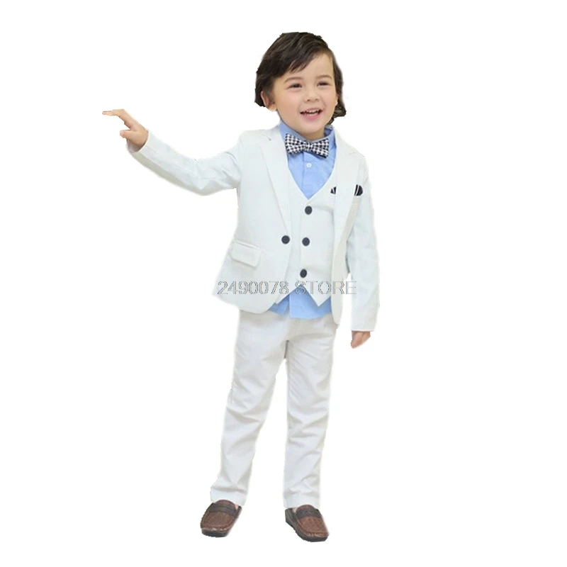 Костюм-тройка для мальчиков, белый смокинг, жилет, штаны