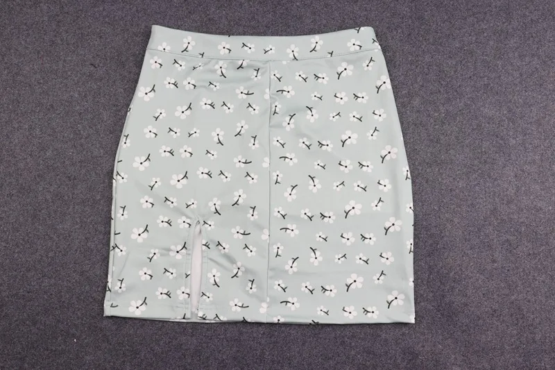 Женская юбка с высокой талией, короткая юбка с разрезом и цветочным принтом, лето Повседневные мини-юбки, в Корейском стиле, 2020