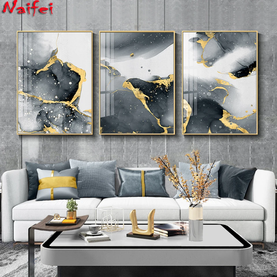 Алмазная вышивка 3 шт. современная абстрактная мозаика 5d Сделай Сам полностью квадратная круглая 3d Алмазная картина Золотое черное искусство