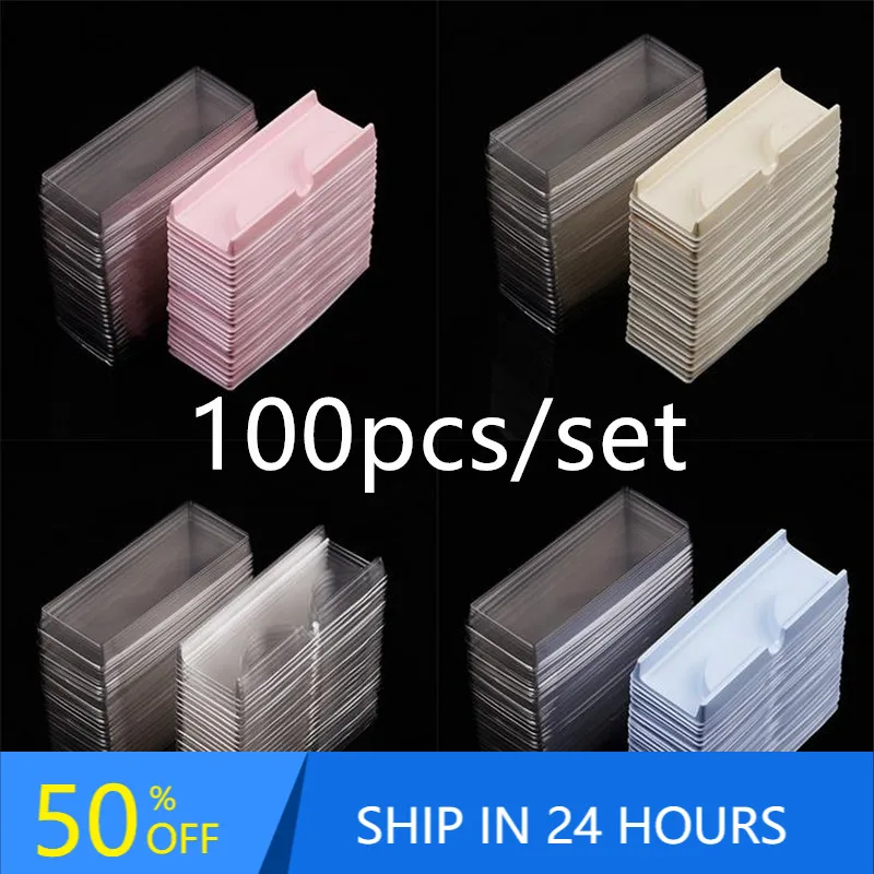 Пластиковый прозрачный чехол для ресниц, чехол для хранения ресниц, розовый, бежевый цвета, 40 #41, 100 шт.комплект