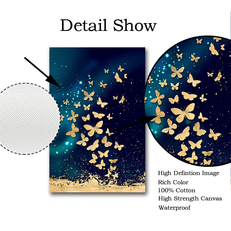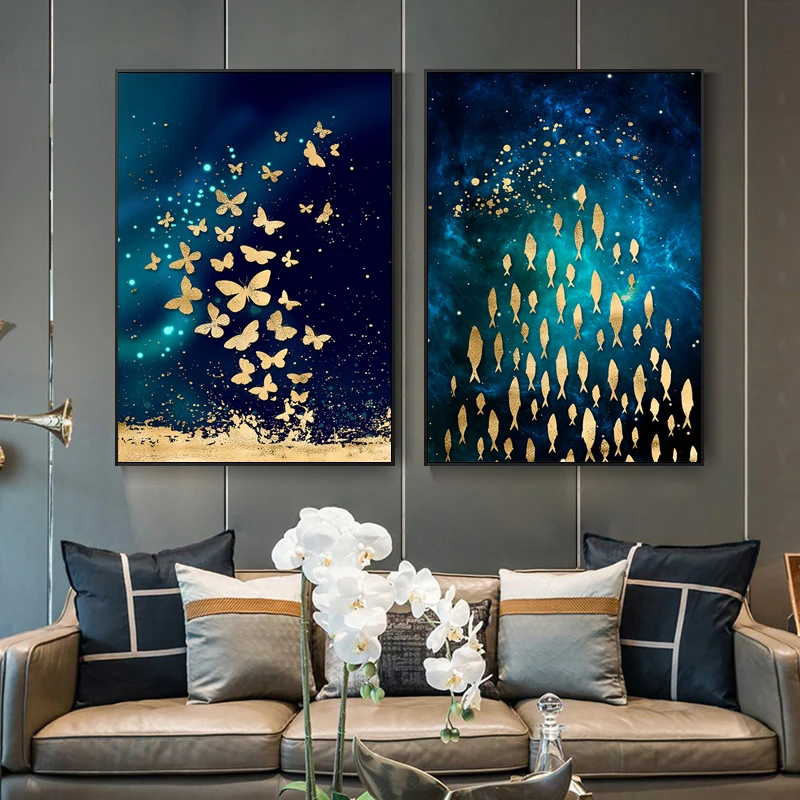 Постер для танца с золотой бабочкой, рыбой, птицей, скандинавский стиль, настенное художественное изображение, холст, постер с принтом, абстрактная картина, домашний декор