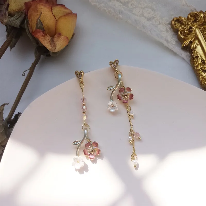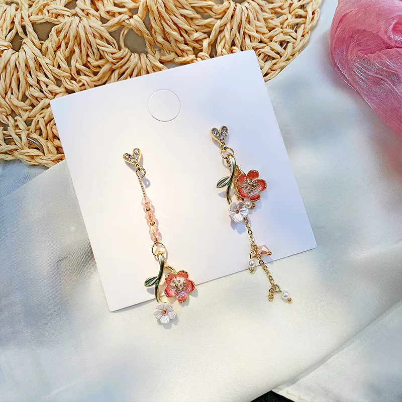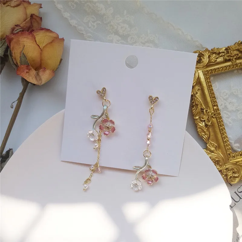 Серьги женские ассиметричные с кисточками, длинные висячие украшения из смолы, модные креативные милые джокерские серьги с цветочным дизайном, 2020