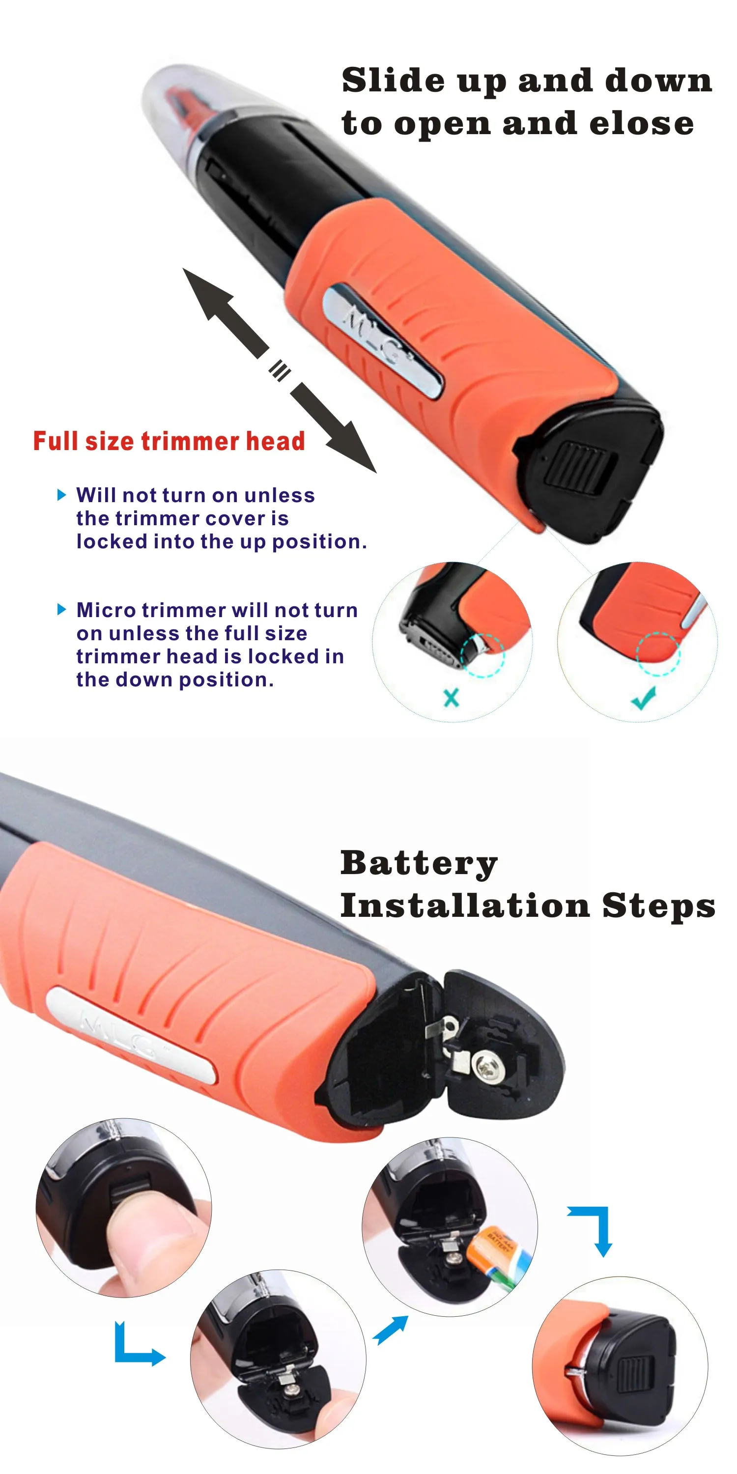 Интегрированный дизайн, прост в использовании и переноске.Доступны двойные концы, один конец для обрезки волос на носу, бровей, усов; Другой конец для стрижки.Каждом конце оснащена двумя разных размеров и гребня (2 мм/4 мм, 6 мм, 1,5 см, 2,0 см), удобно для вас, чтобы контролировать длину волос.Не водонепроницаемый.Встроенный светодиодный светильник.Питание от 2 * AAA батарей (не входят в комплект).Примечание: микро триммер не включается, если полноразмерная Головка триммера не заблокирована в положении вниз. (Полноразмерная Головка триммера одинаковая.)Спецификация:Материал: АБС + резина + нержавеющая стальИсточник питания: 2 * AAA батареи (не входят в комплект)Цвет: оранжевыйВес: 86 гРазмеры: 17*2,5*4 см (Длина * Ширина * высота)Посылка:Упаковка в оригинальной коробке.Триммер для волос * 1Насадки для гребня * 4Защитная крышка * 1Чистящая щетка * 1Руководство пользователя * 1