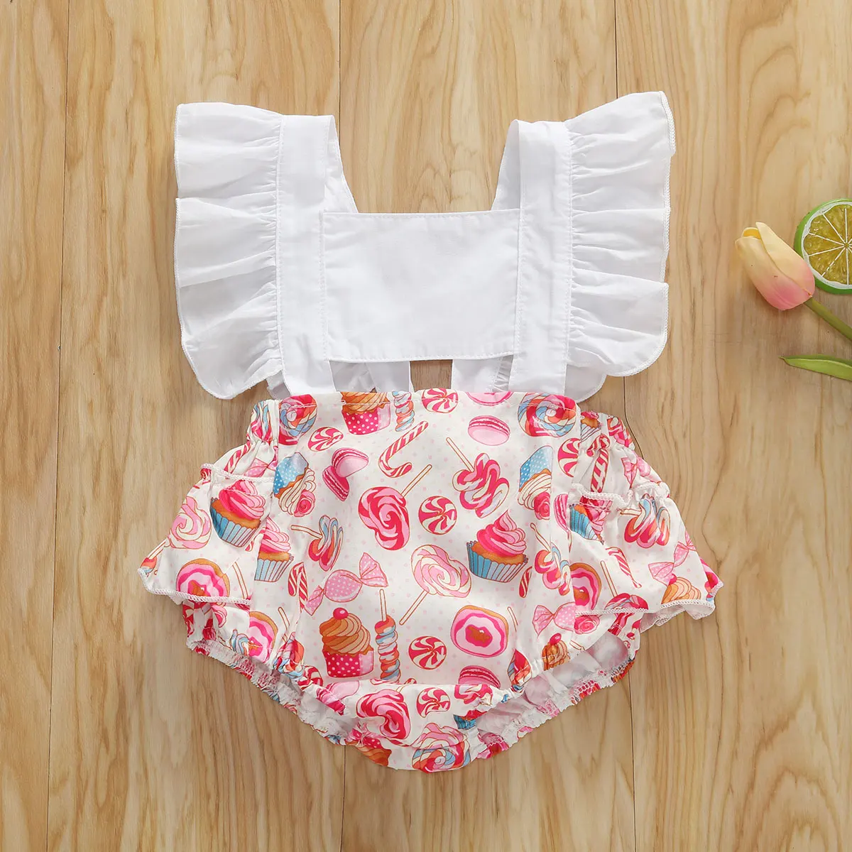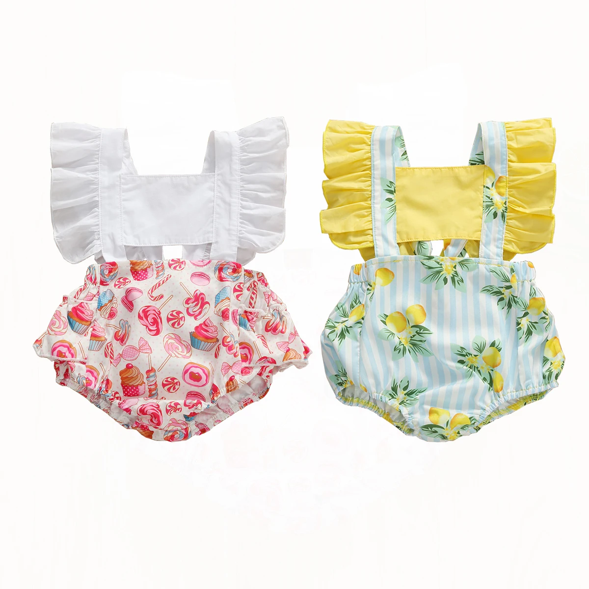Боди без рукавов, с оборками, с ярким принтом, для новорожденных девочек, лето 2020