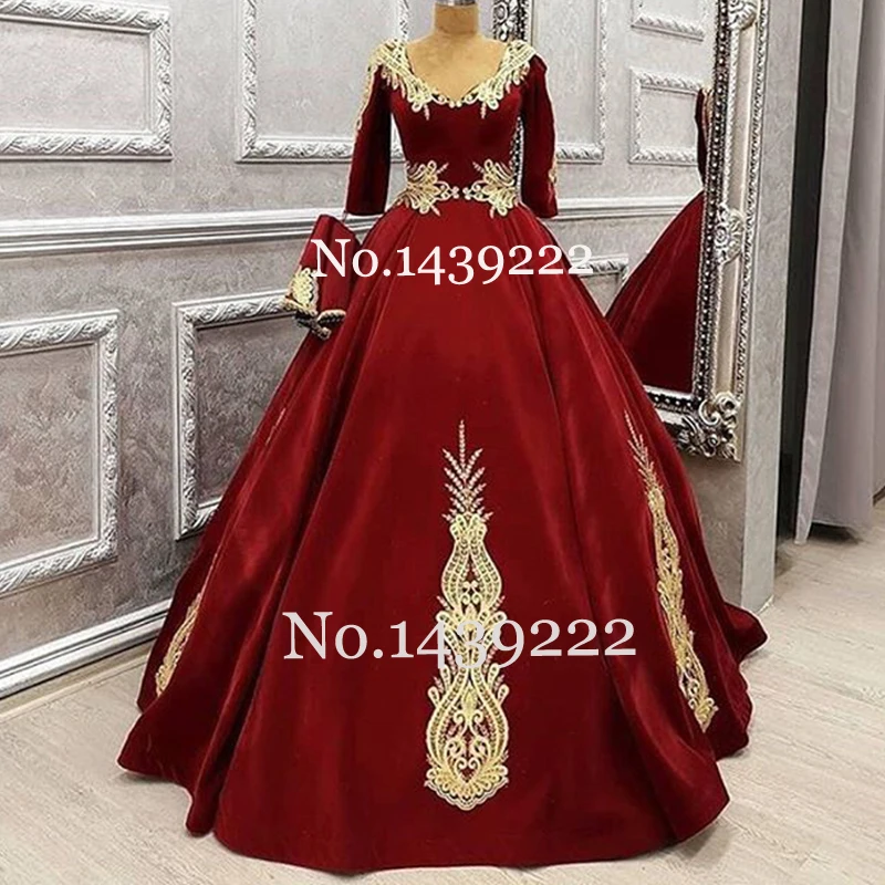 Бордовый атласный полурукав, марокканская зернистая Золотая Кружевная аппликация, Дубай, Арабская официальная вечеринка для особых случаев