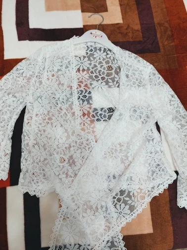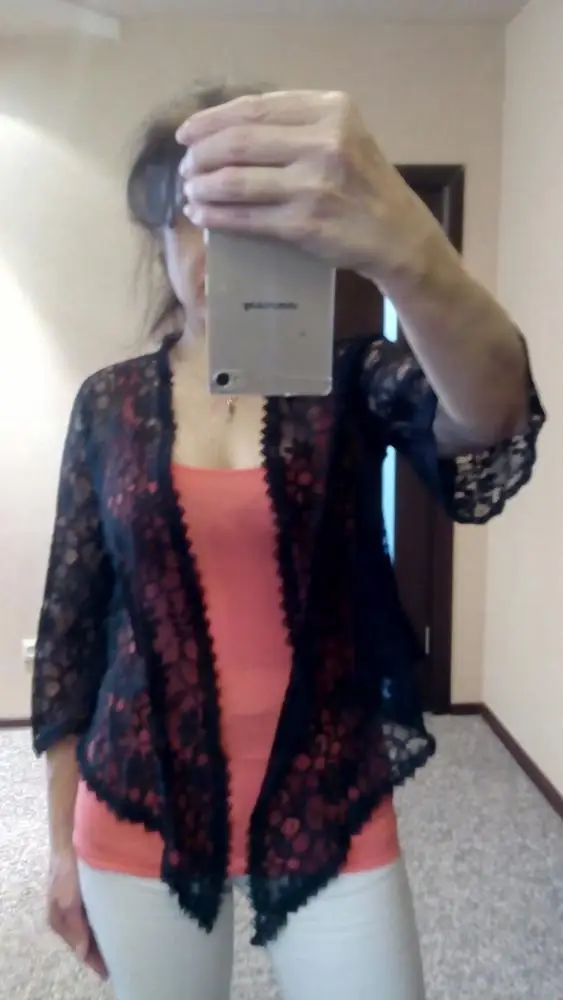 Привет. Получила накидку. Очень лёгкая, красивая, мягкая и приятная ткань. Смотрится очень красиво. На объем грудной клетки 94 см, брала размер M, но я думаю и L был бы хорошо. Накидка очень понравилась, сарафан без рукавов и эта накидка- просто супер, решение... Пошита хорошо, качественно. Спасибо большое за красивый товар и маленький подарок