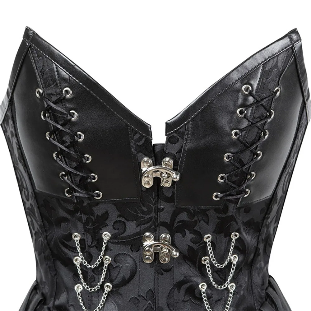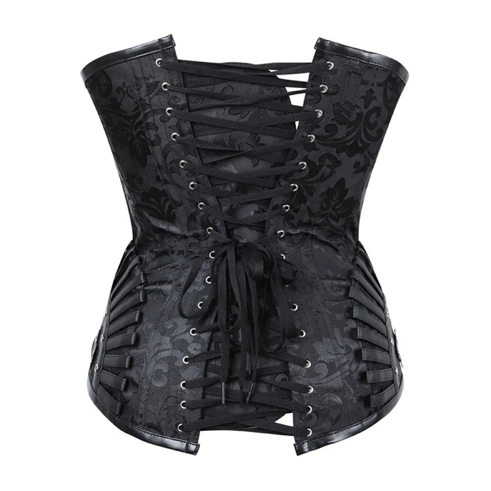 Готический корсет из искусственной кожи, 14 спиралей, со стальными косточками, Женский корсет в стиле стимпанк, черные готические сексуальные бюстье на шнуровке, S-2XL