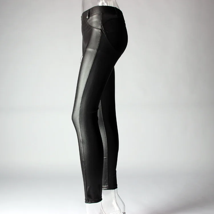 Искусственная кожа с низкой талией леггинсы женские сексуальные бед...
