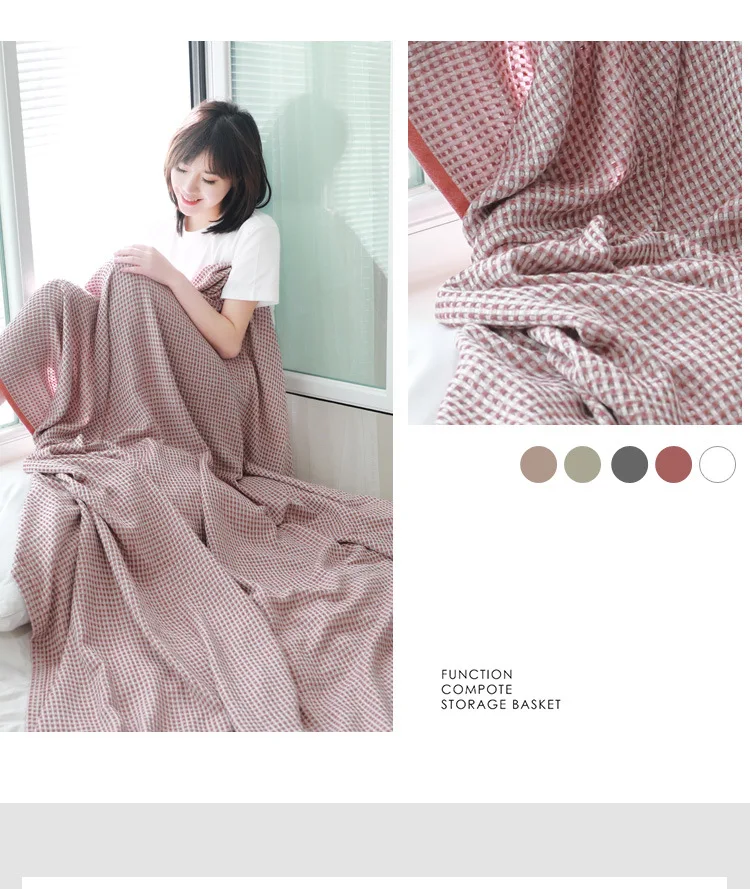 Японское хлопковое вафельное летнее одеяло для дивана, кровати, пол...
