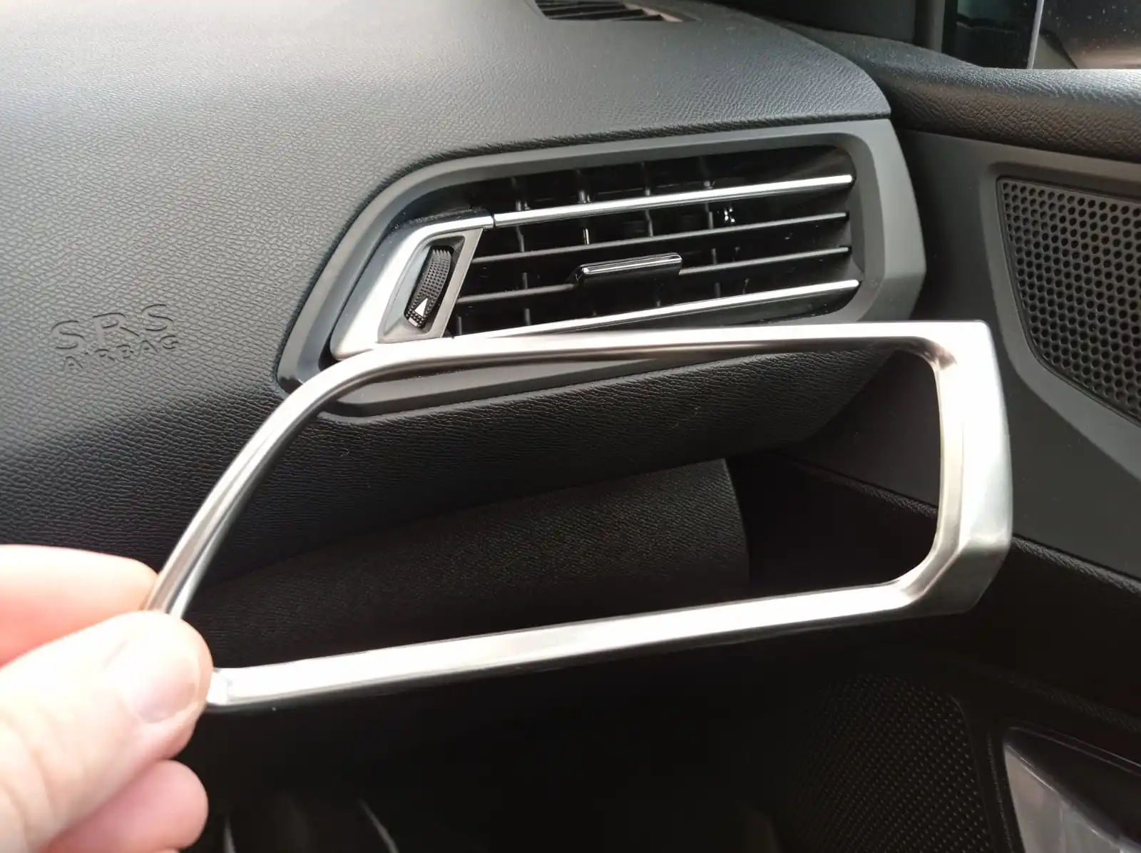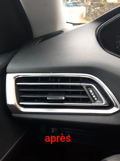 Я только что получил его и установил его на моем Peugeot 308 sw (tb действителен для 308), и результат очень хороший. Это металлический лист (выглядит как алюминий) с лентой 3M сзади, которая прилипает к раме воздушного экстрактора транспортного средства. Мне нравится не пластик. Цвет идентичен оригинальному автомобильному хрому внутри. Нет ничего, что нужно разобрать.