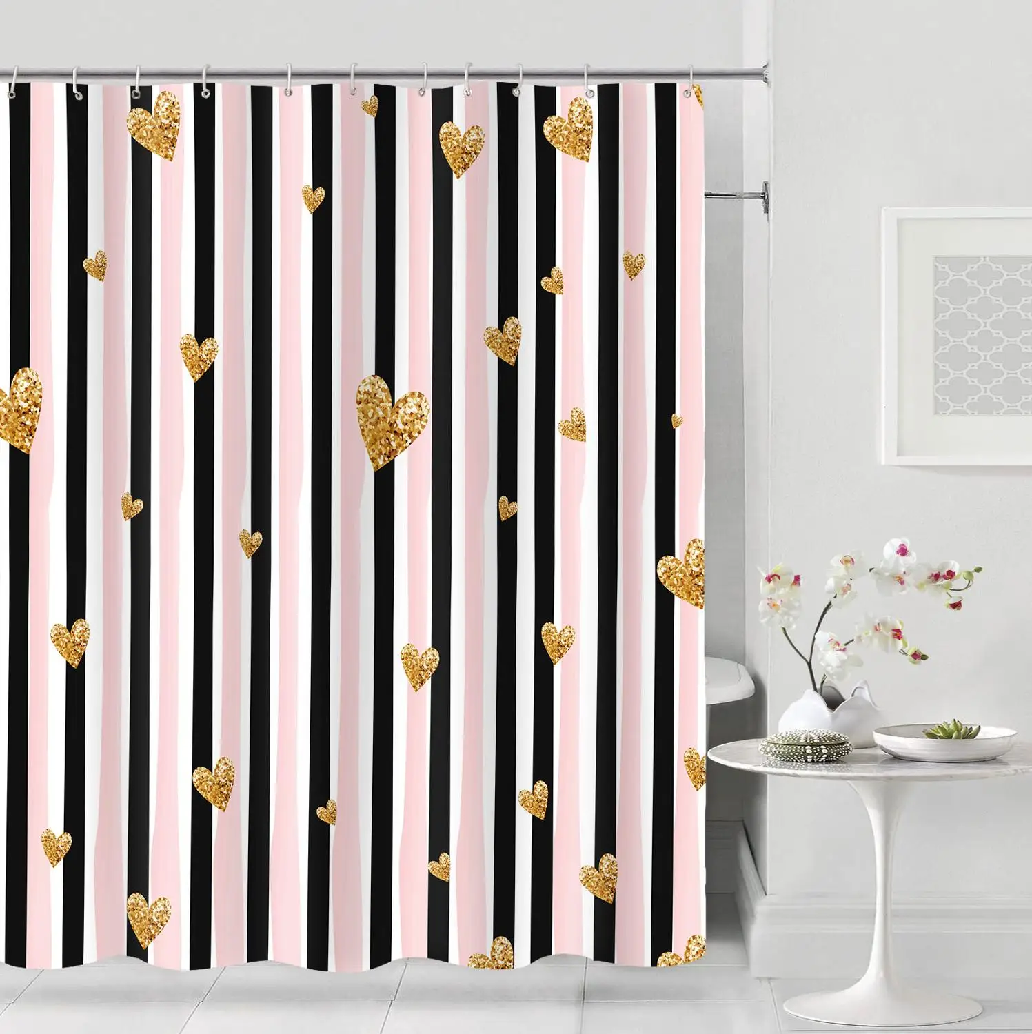 MTMETY, занавеска для душа с цветами, различные типы сердец, романтика, любовь, тема, акварель, полоски, искусство, декор для ванной комнаты