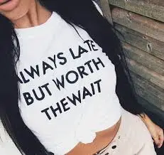 Модная женская летняя футболка с надписью Always Late But Worth The Wait, женские забавные винтажные Топы Tumblr, одежда, Camisas Mujer