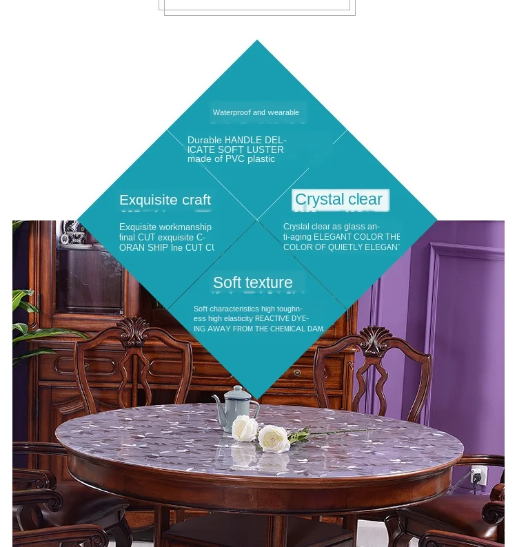 скатерть круглая гибкое стекло на стол клеенка на стол table cloth 1,0 мм круглая ПВХ скатерть Водонепроницаемая маслостойкая крышка стеклянная мягкая ткань покрытие стола Домашняя Кухня Столовые приборы столовая