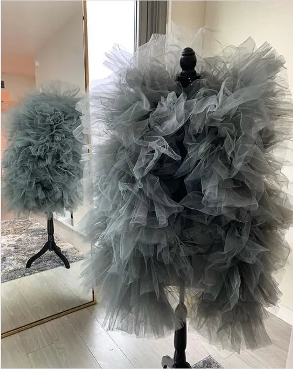 Женский топ из тюля, розовая накидка серого цвета, трендовый, пышное с оборками, Новое поступление, 2020