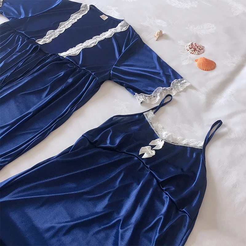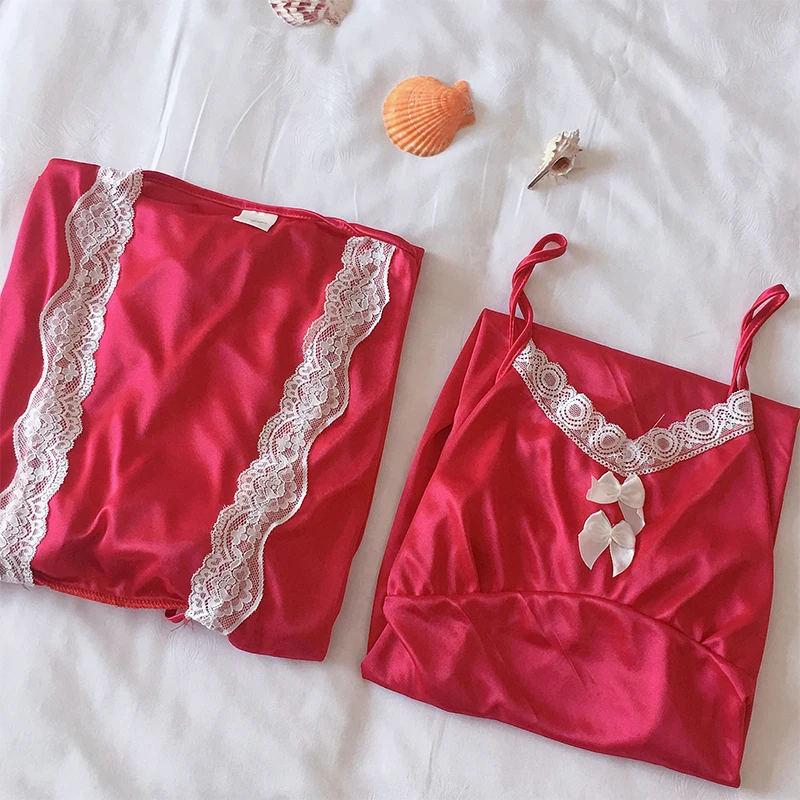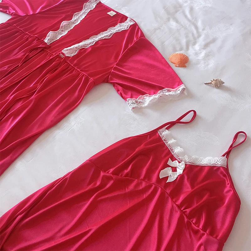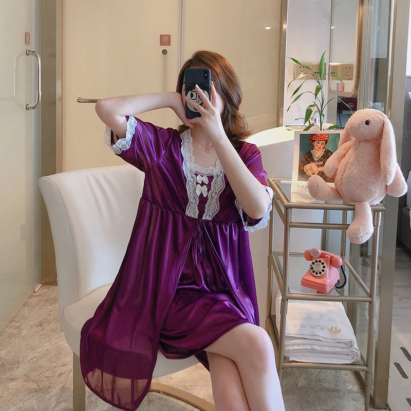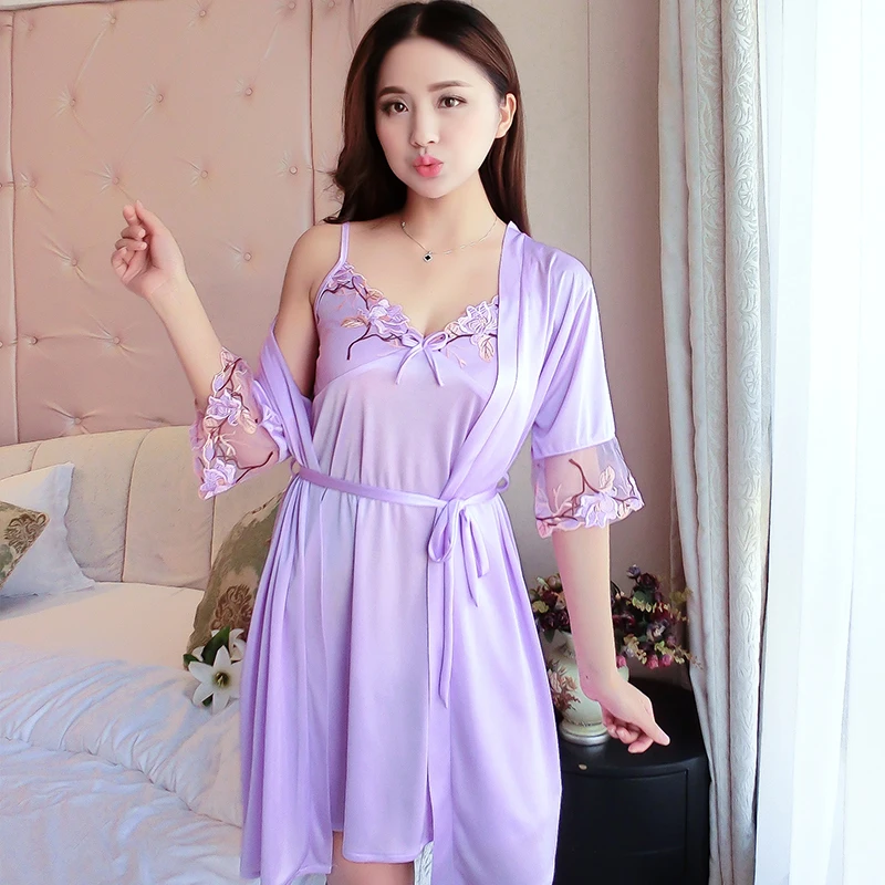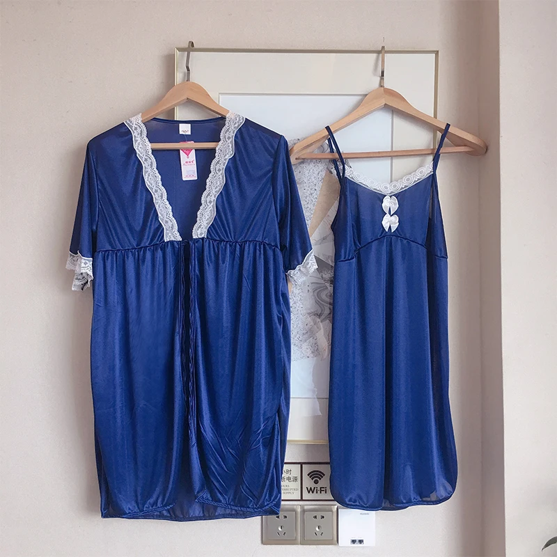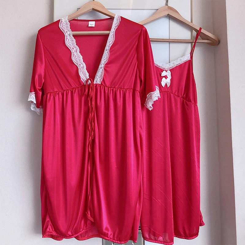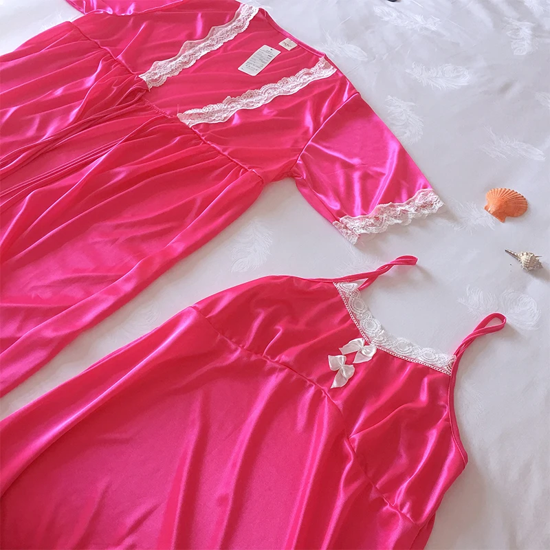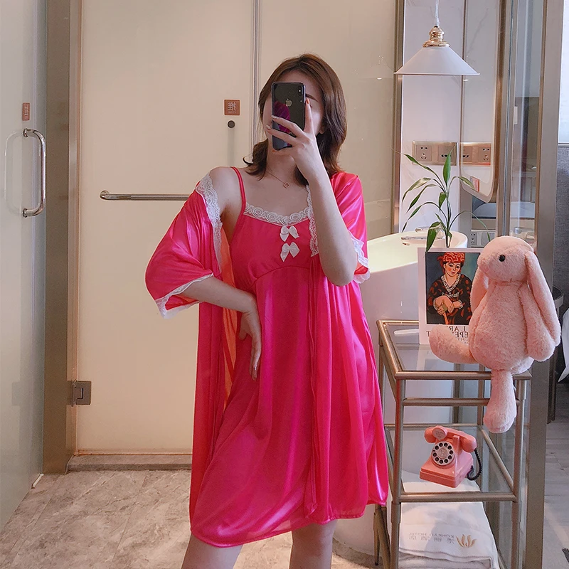 Пикантная летняя ночная рубашка из 2 предметов, женские ночные рубашки, халат, шелковое кимоно, банная рубашка, одежда для сна из искусственного шелка, повседневная женская одежда
