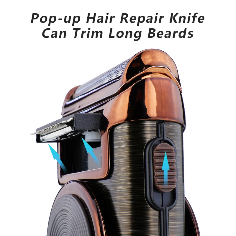 Лезвие из нержавеющей стали и ультратонкая Сетчатая Конструкция лезвия из шпона, близкая к изгибу лица, которая может захватывать бороды под углом 360 градусов, помогает вам тщательно бриться.