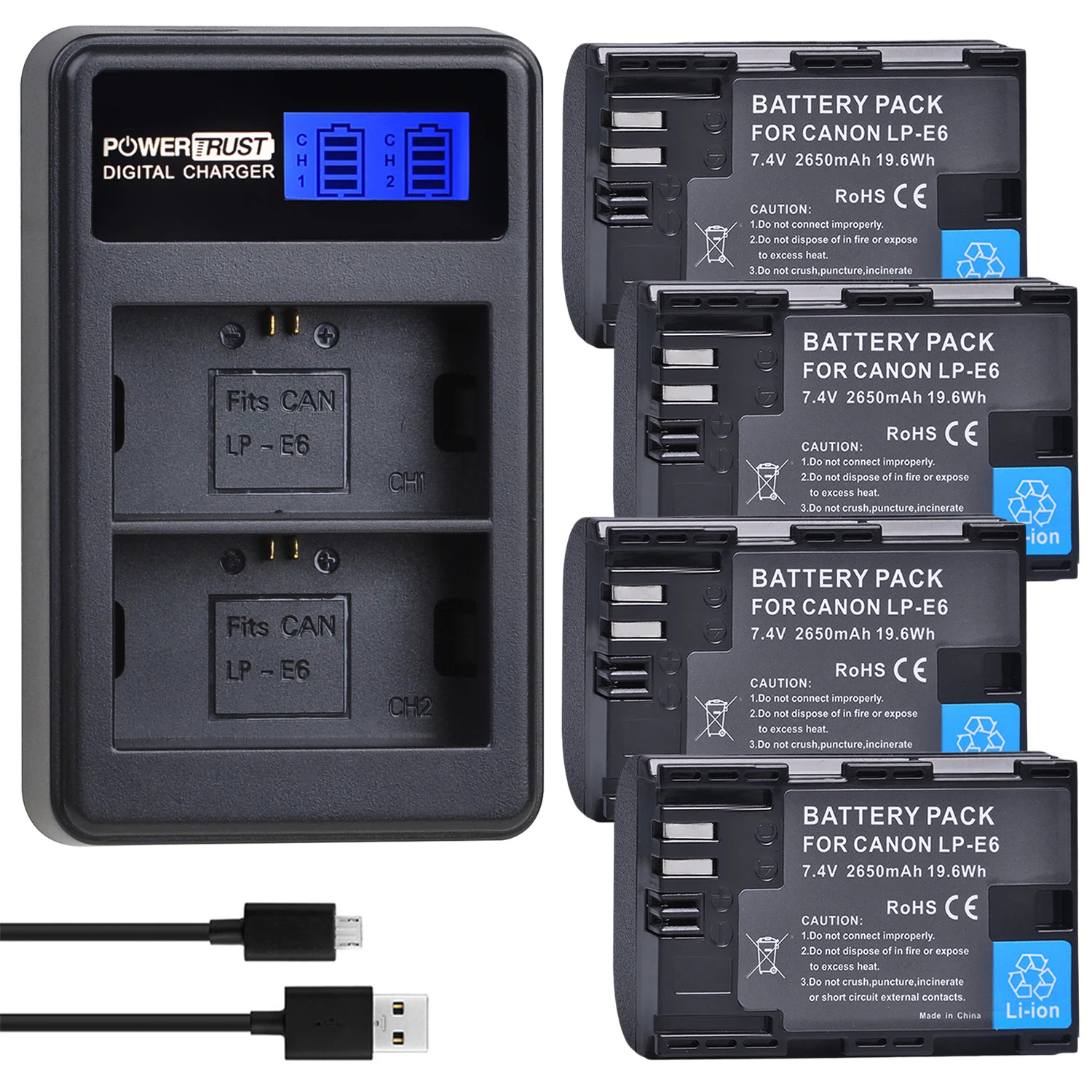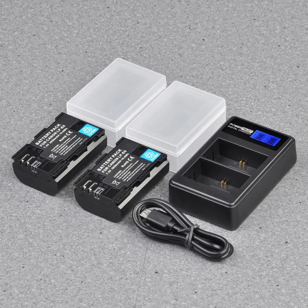 PowerTrust 2650 мАчАккумулятор LP-E6, LP-E6N и двойное зарядное устройство для Canon EOS 5D Mark II/III/IV, EOS 5DS, 5DS R, EOS 6D, 6D Mark II, EOS 7D, 7D Mark II, EOS 60D, 60Da, 70D, 80D, EOS R, XC10, XC15