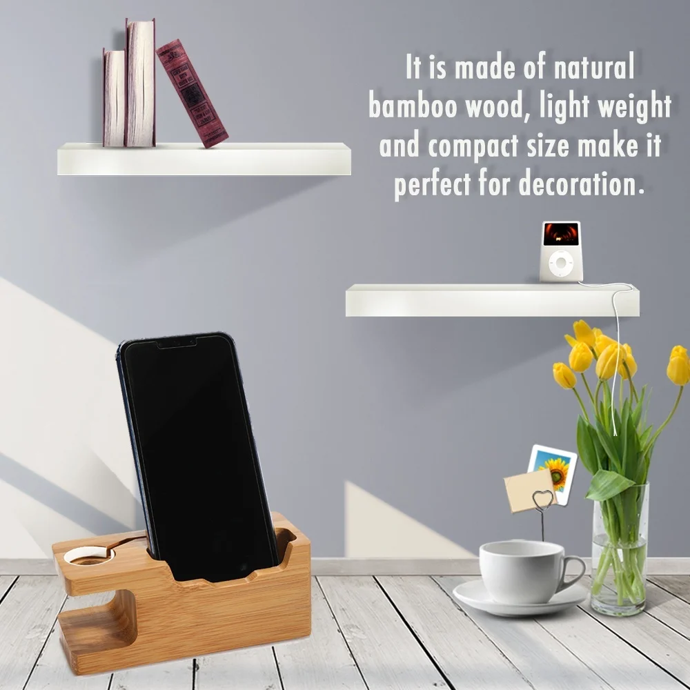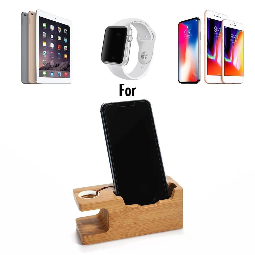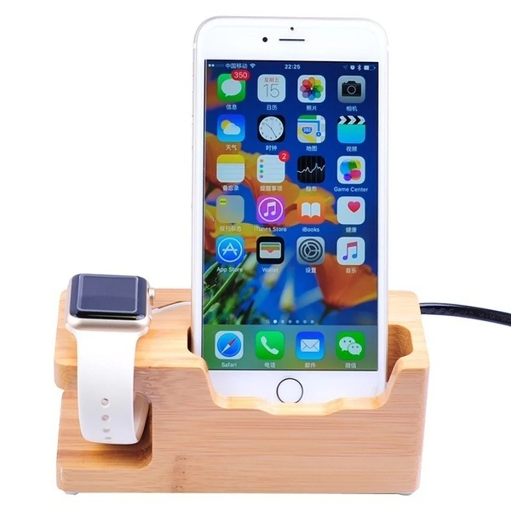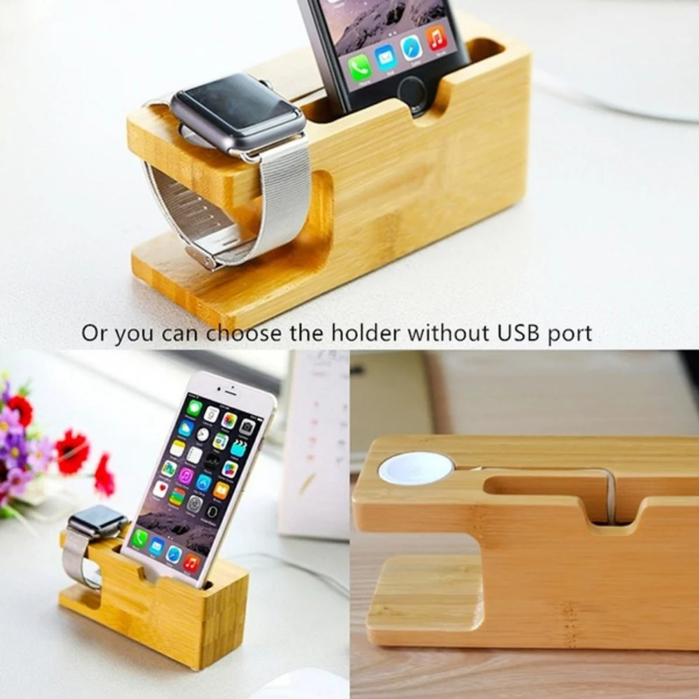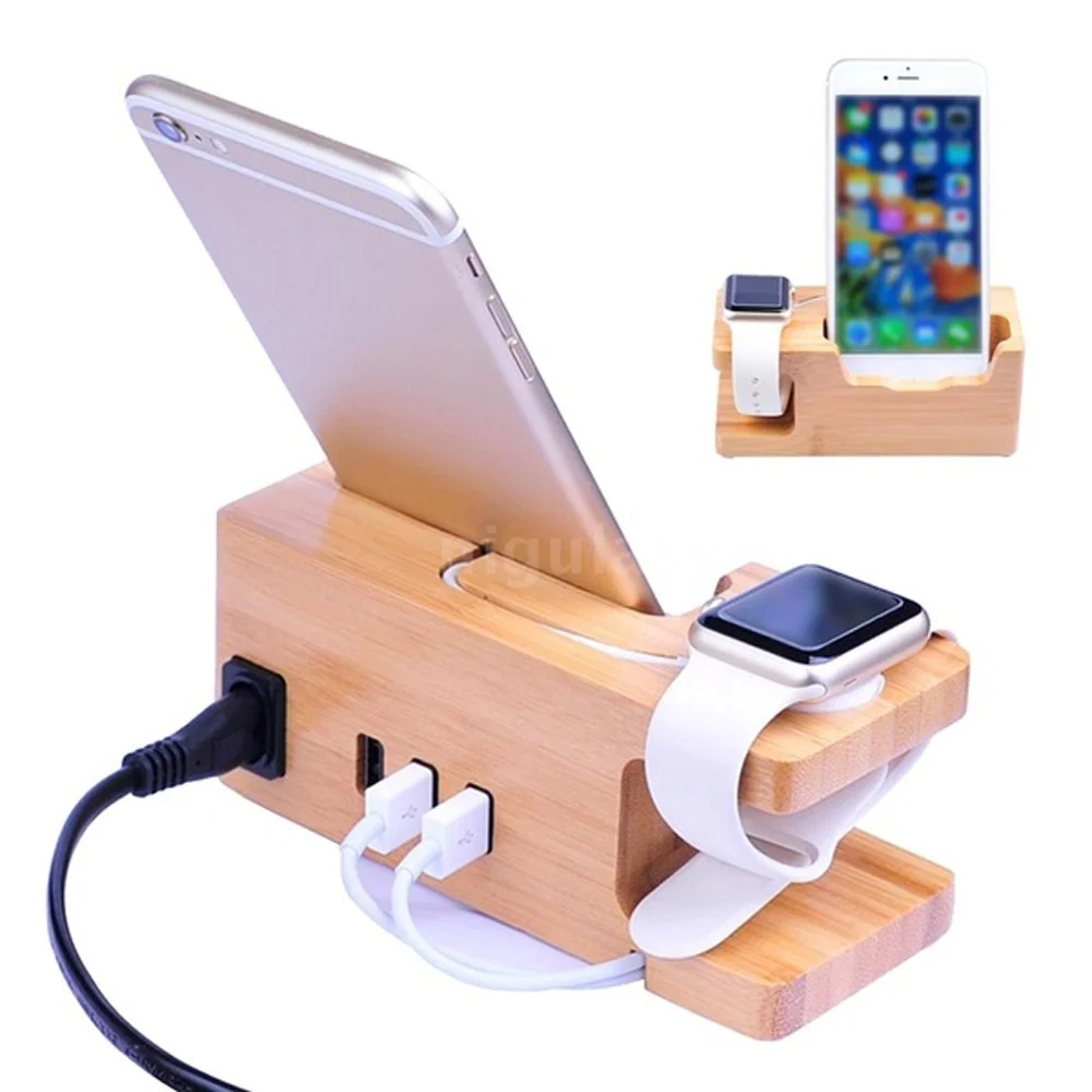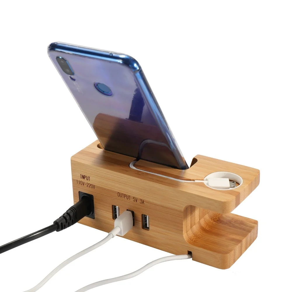 Зарядное устройство с 3 USB-портами для Apple Watch и Phone, подставка-органайзер, подставка-держатель, 15 Вт, 3 А настольная зарядная станция из бамбука и дерева для Iwatch