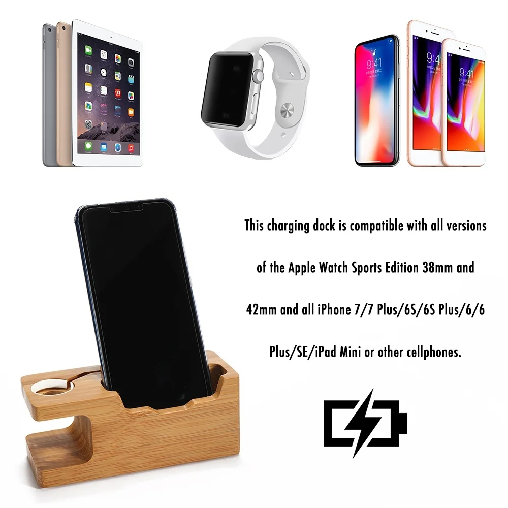 Эта зарядная док-станция совместима со всеми версиями Apple Watch Sports Edition 38 мм и 42 мм и всеми iPhone 7/7 Plus/6S/6S Plus/6/6 Plus/SE/iPad Mini или другие мобильные телефоны.