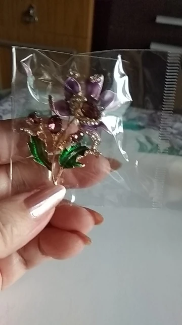 Брошь роскошная! Не маленькая, яркая, очень блестящая и нарядная) эмаль идеальная. Красивый лиловый градиентный цвет! Вживую️ цвет нежнее и смотрится даже лучше, чем на фото продавца☺️Я просто в восторге! Заказываю часто у этого продавца. Рекомендую с удовольствием! ❤️