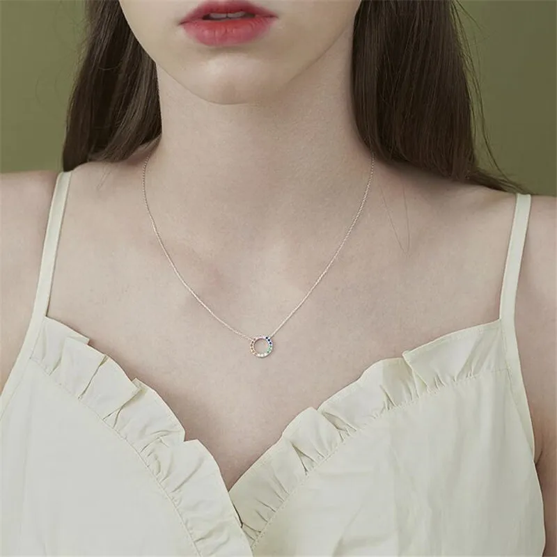 Украшение Uini-Tail, из стерлингового серебра 925 пробы, в виде Круга радуги, креативное, ожерелье леденец