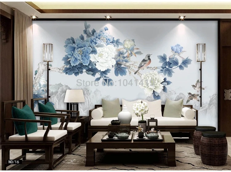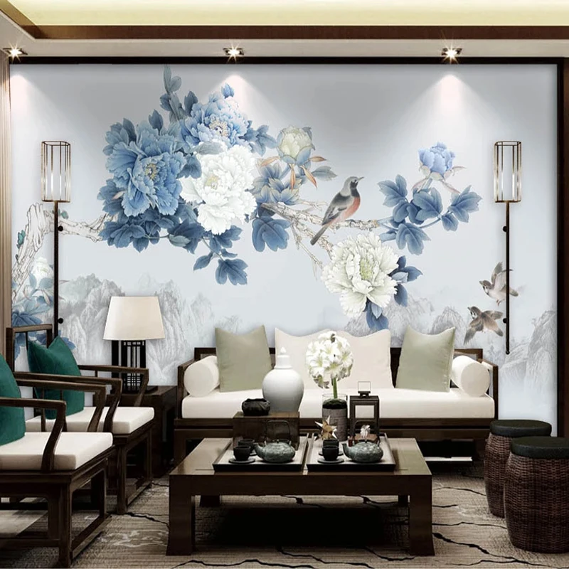 Пользовательские фото обои в китайском стиле пионы цветы и птицы фрески гостиная ТВ диван кабинет фон Настенный декор обои 3D