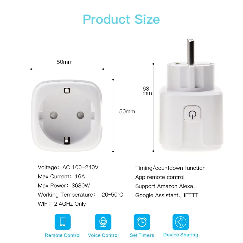 Монитор мощности и Функция синхронизации Эта умная Вилка питания может предоставлять отчеты в реальном времени о том, сколько энергии потребляет ваша бытовая техника. Это очень хорошо для вас, чтобы установить расписание для автоматического включения/выключения ваших устройств через приложение.