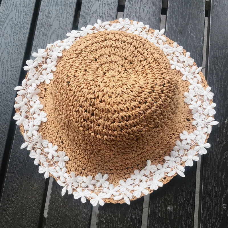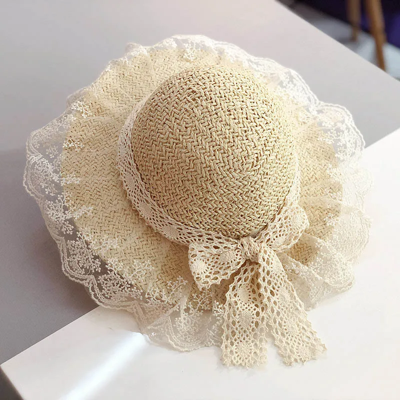 Шляпа соломенная для девочек, с кружевным козырьком, 2021, пляжная шляпа от солнца